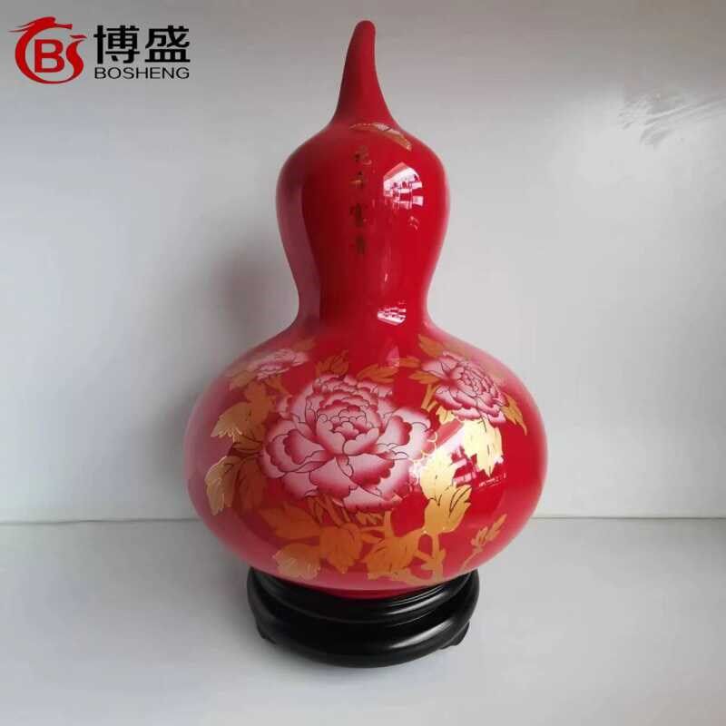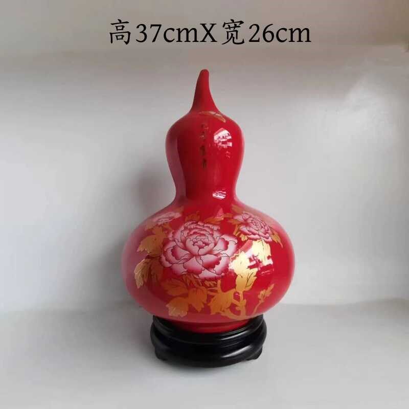 红色陶瓷花瓶摆件家居饰品客厅电视柜酒柜乔迁开业招财葫芦工艺品