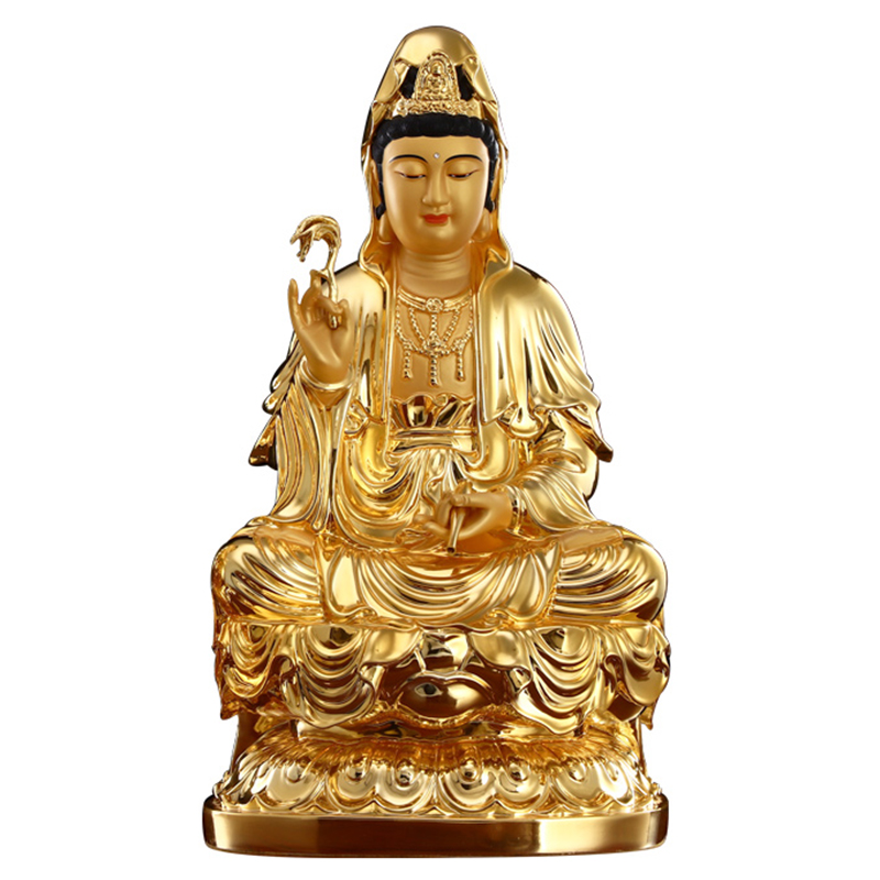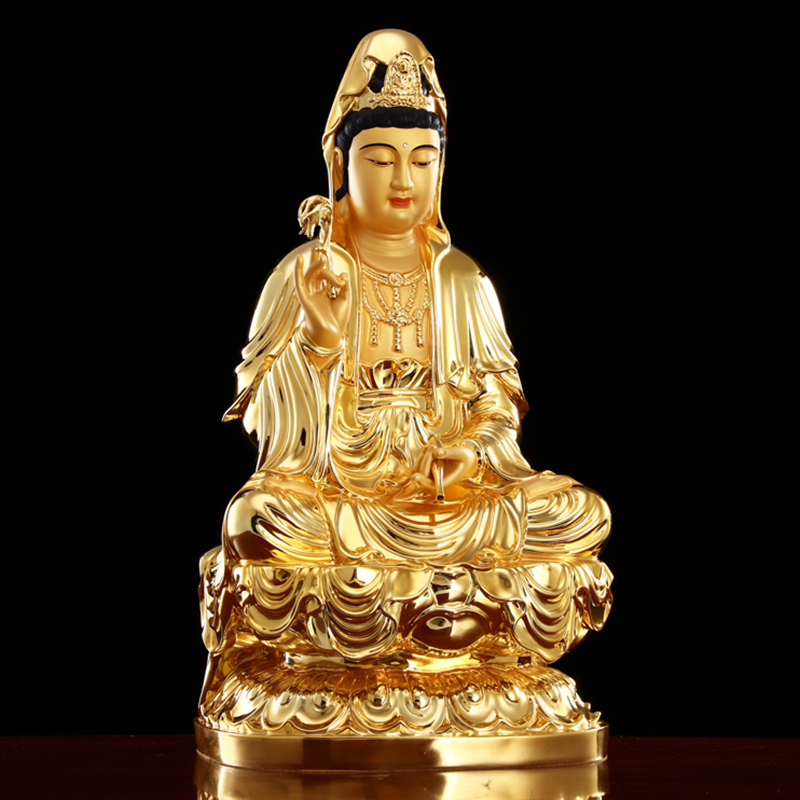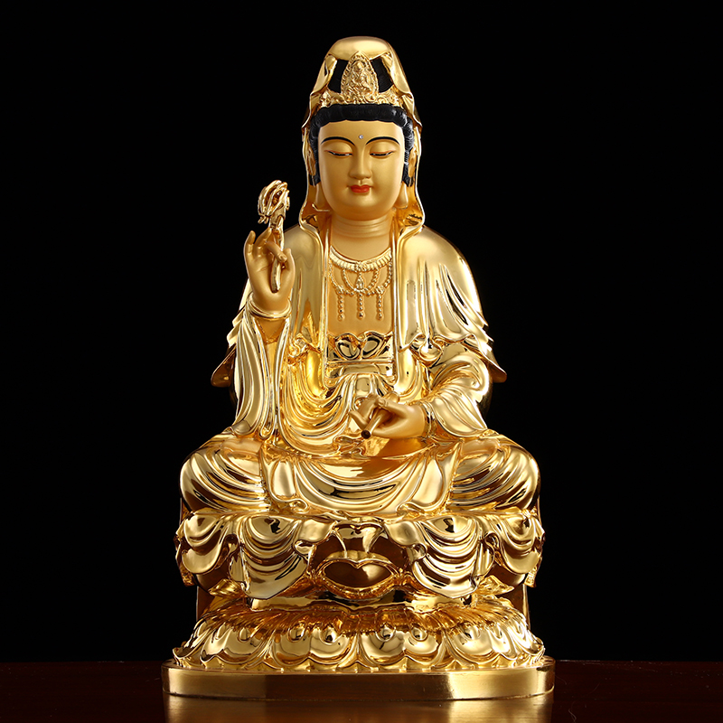 台湾纯铜鎏金观音菩萨佛像家用供奉观音摆件铜像佛堂客厅坐观世音