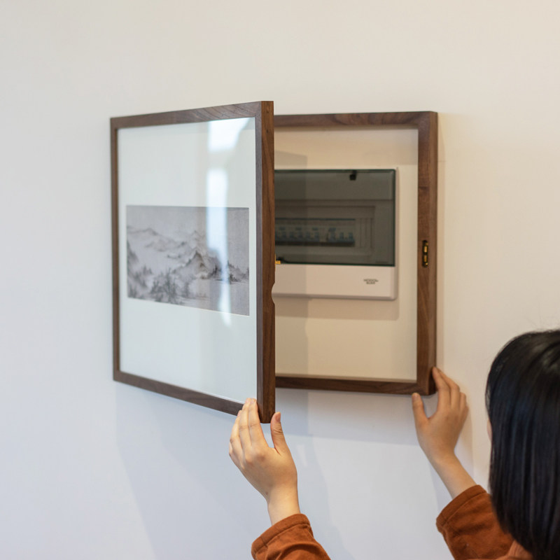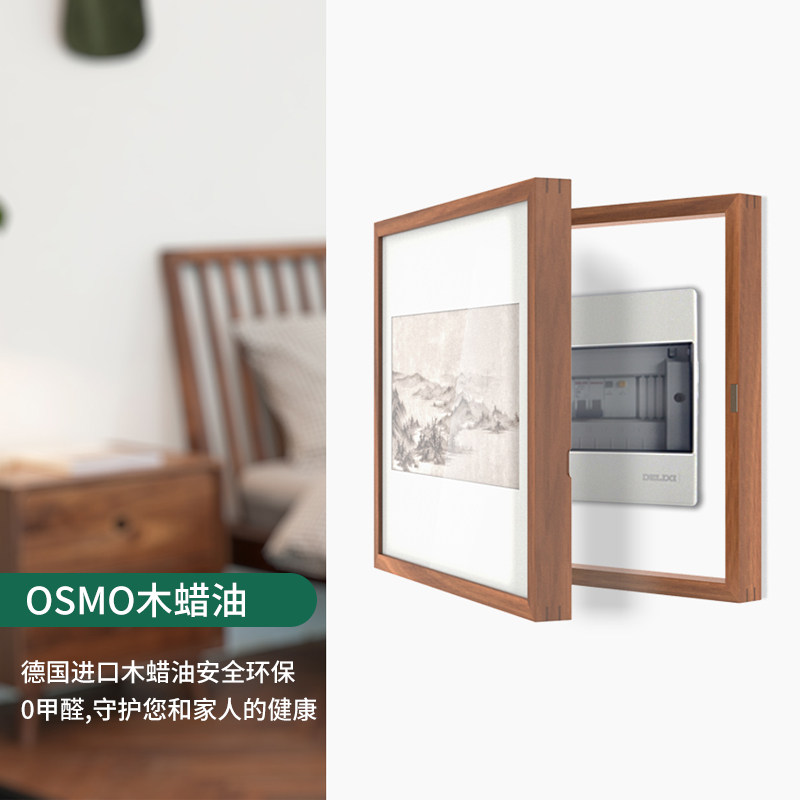 新中式黑胡桃木电表箱装饰画遮挡箱配电箱电闸盒餐厅客厅装饰画