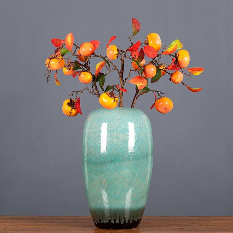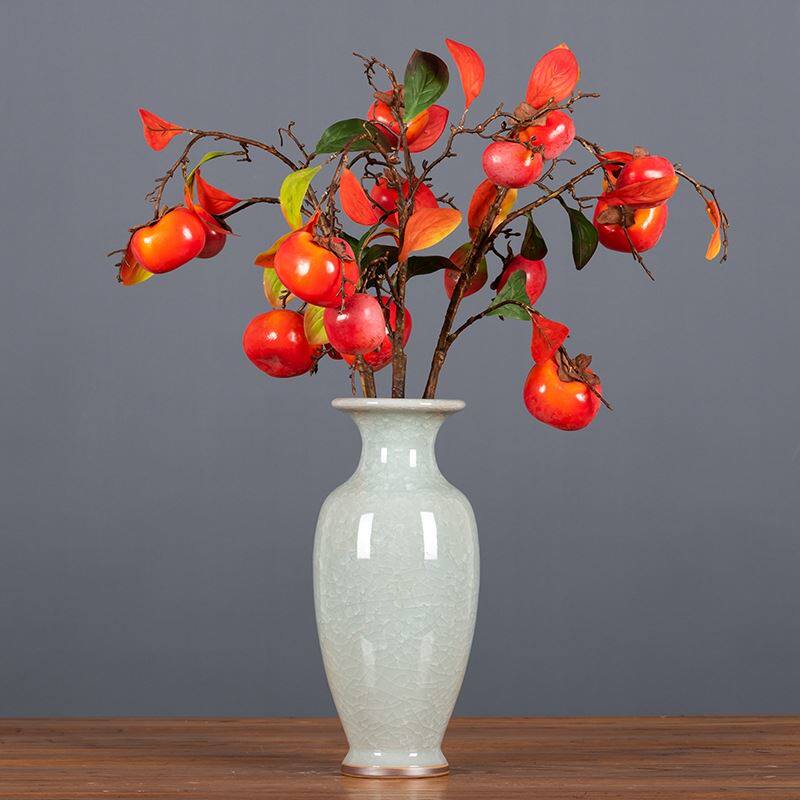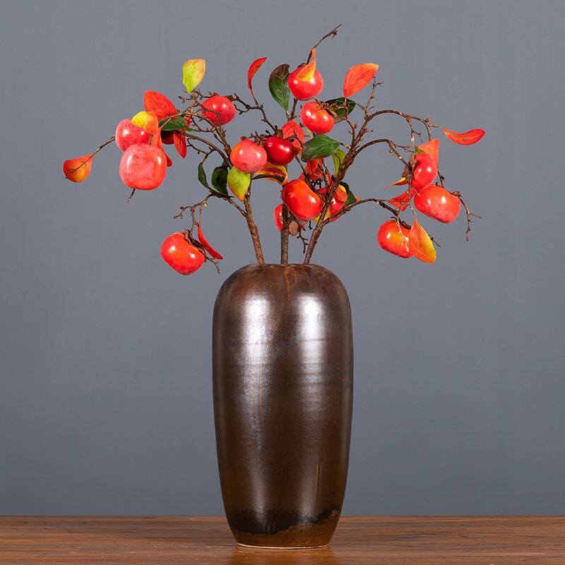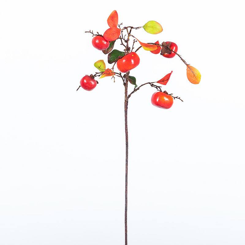 柿柿如意5果下垂柿子多叶枝仿真吊挂假柿子带霜家居装饰婚庆摆件