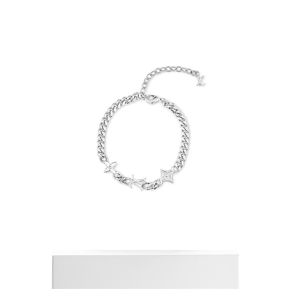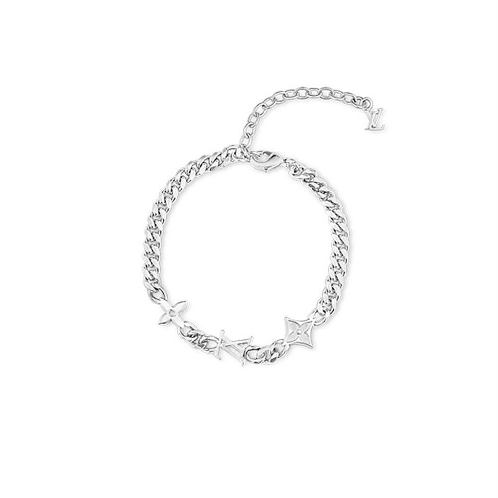 自营LV/路易威登MNG ROW镂刻标识可调节手链银色男士配饰