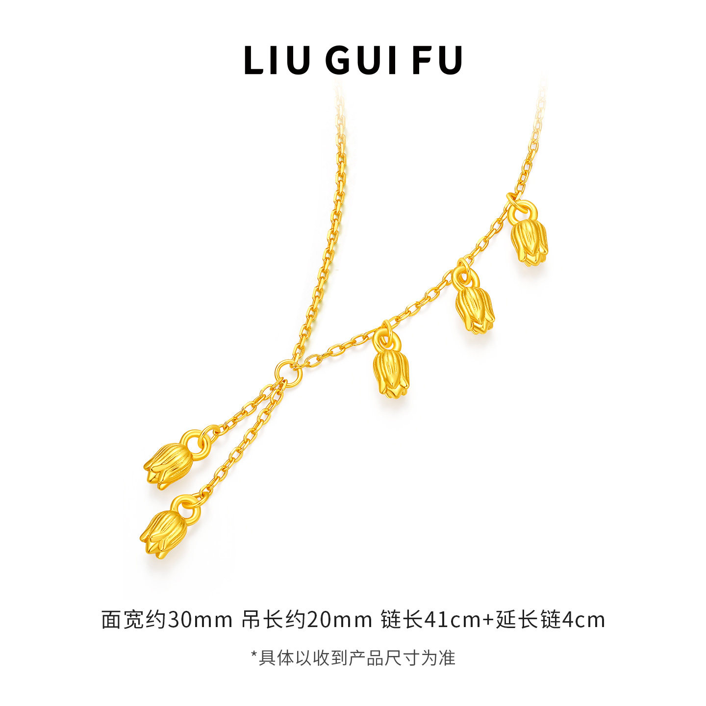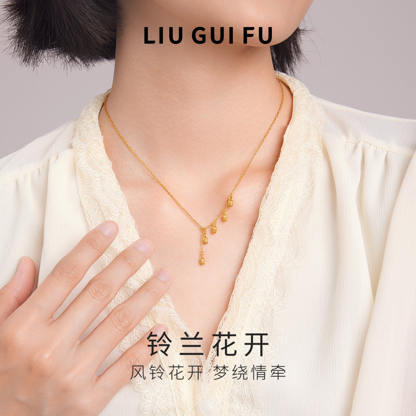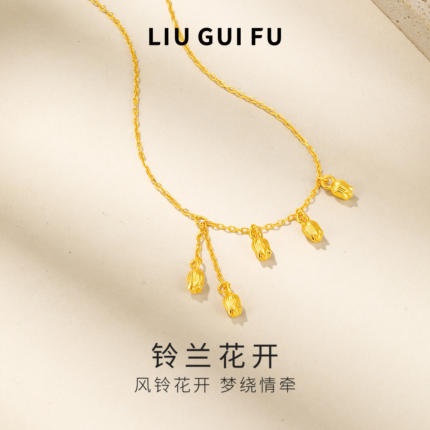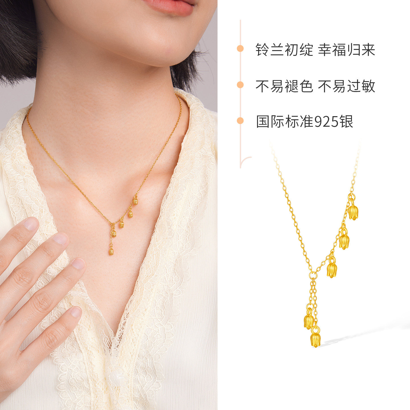 六桂福珠宝铃兰花项链女款S925纯银黄金色套链新款生日礼物
