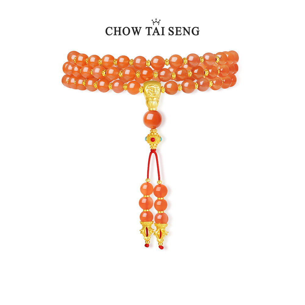周大生玛瑙手工串珠项链叠戴纯银珐琅轻奢高级感母亲节礼物送妈妈