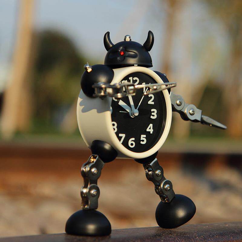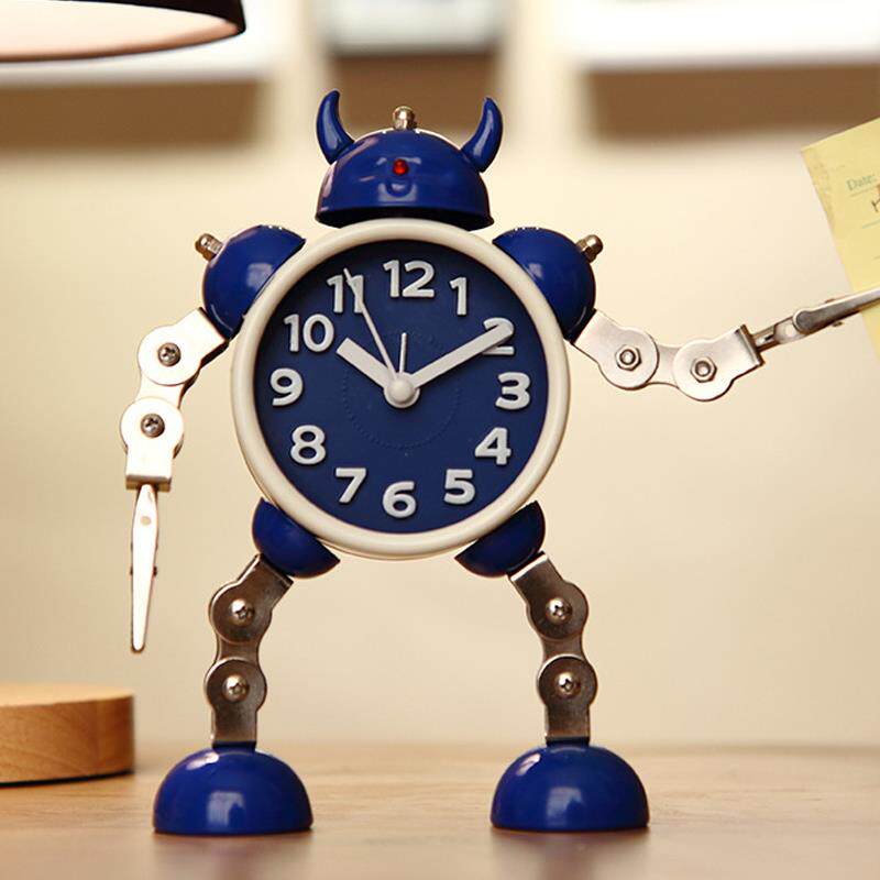 创意机器人闹钟学生学习自律时钟卡通儿童专用床头钟静音个性摆件