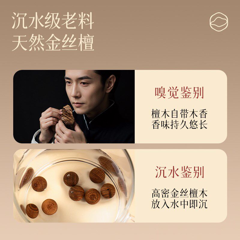 天然金丝檀木手串男士佛珠盘玩楠木檀香手串手链女款多圈木质文玩