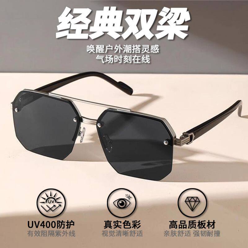 男士双梁墨镜驾驶开车专用防紫外线强光防晒2025新款半框太阳镜潮