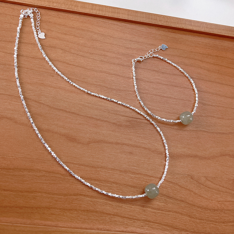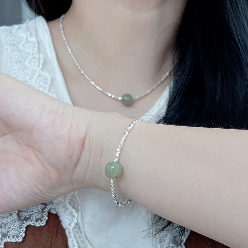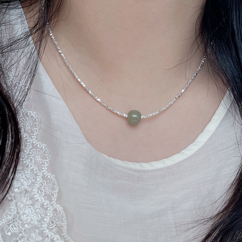 新款S925纯银和田玉碎银子项链轻奢小众碎银几两锁骨链女气质百搭