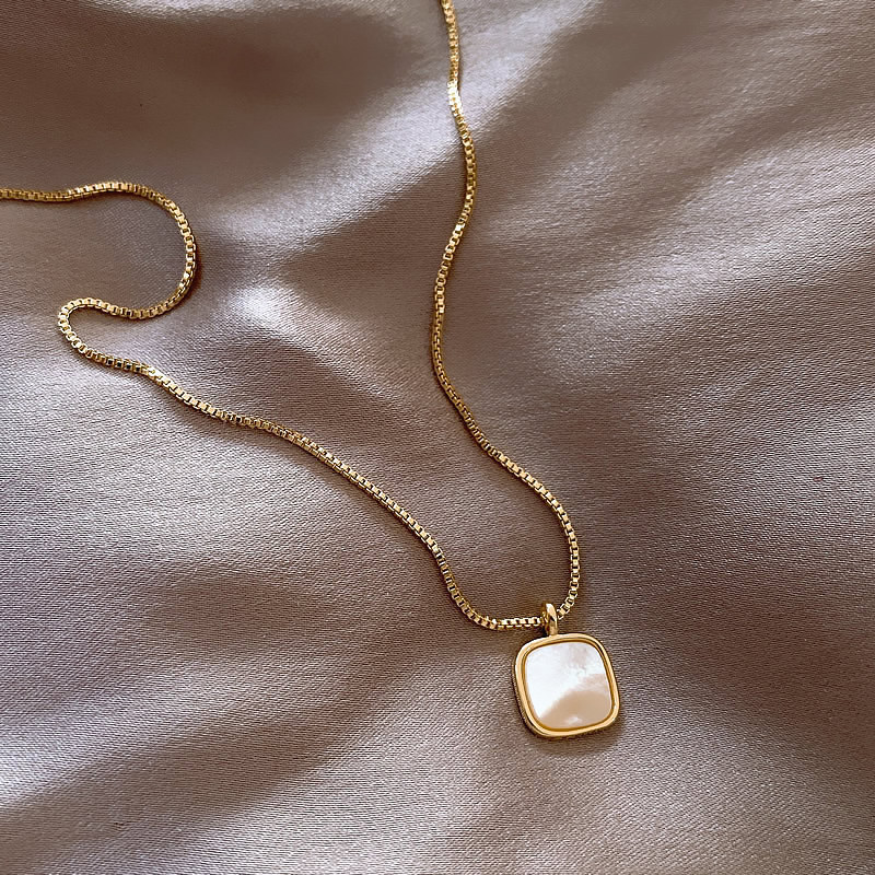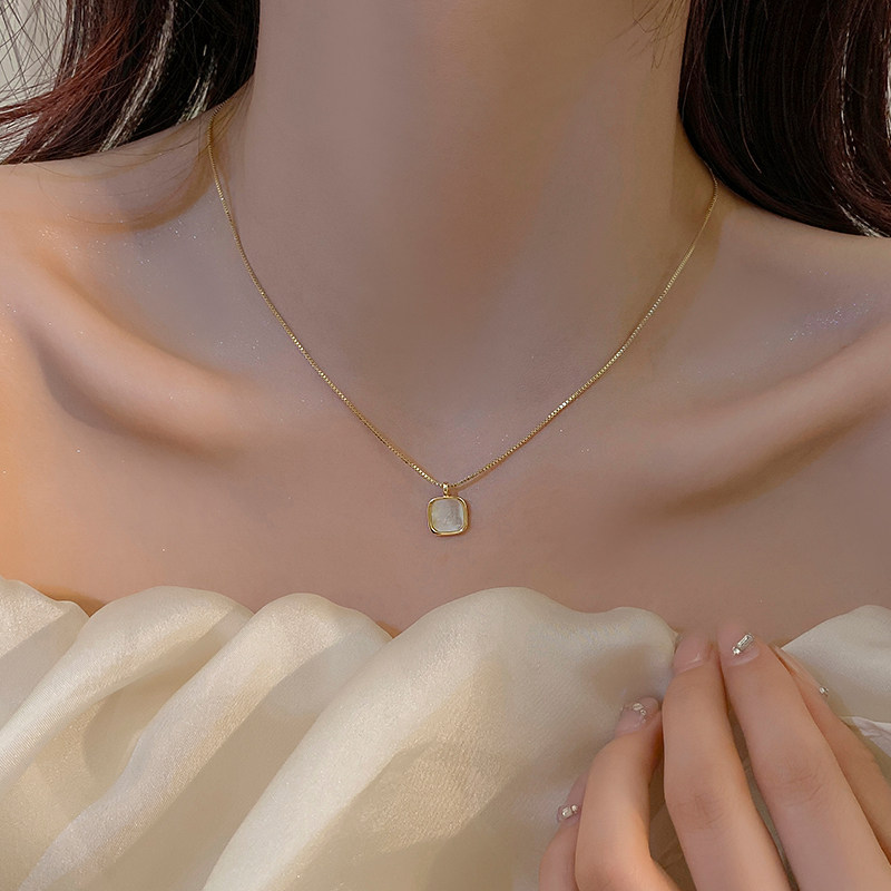 2026新款爆款方形贝壳项链女款高级感轻奢小众精致锁骨链颈链配饰