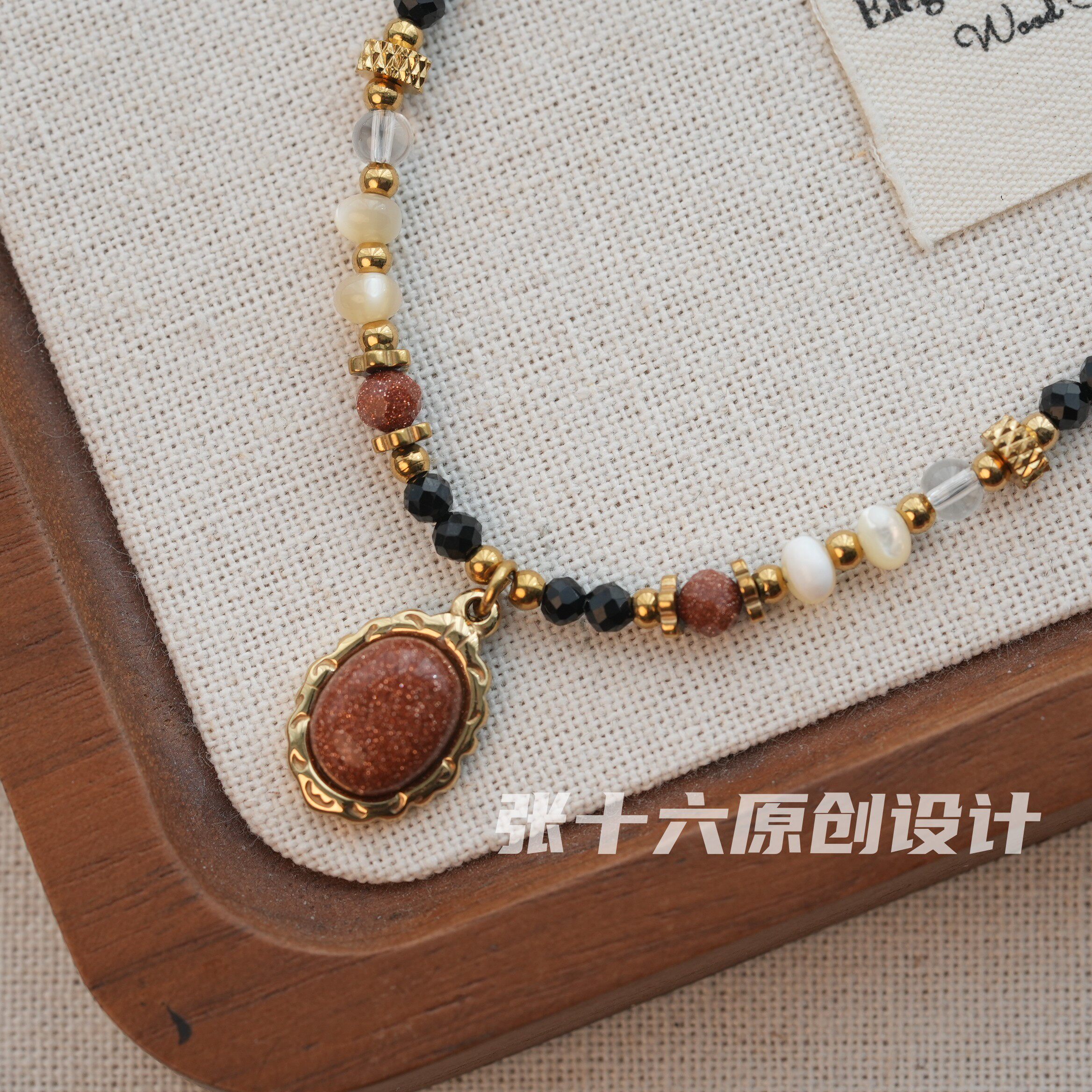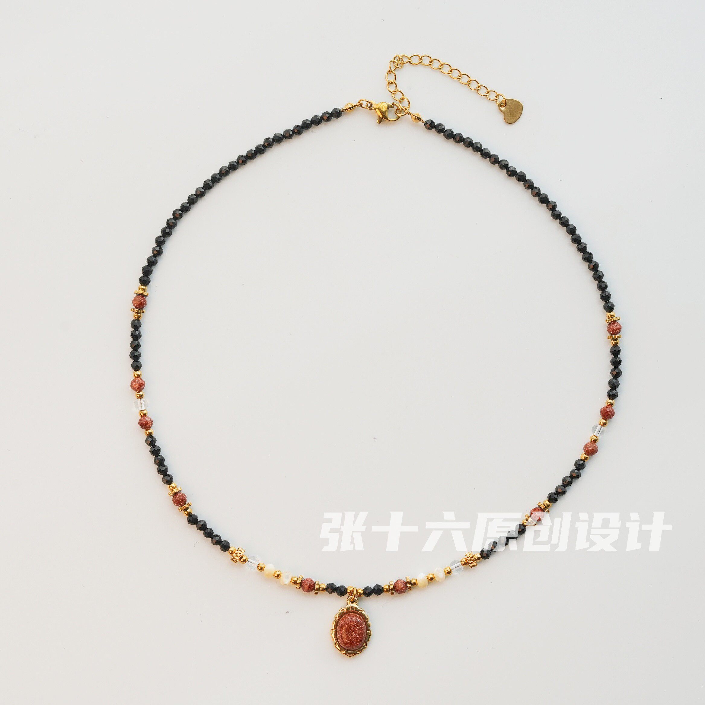 张十六[夜沙项链]钛钢原创设计手工串珠红黑色新中式百搭毛衣链女
