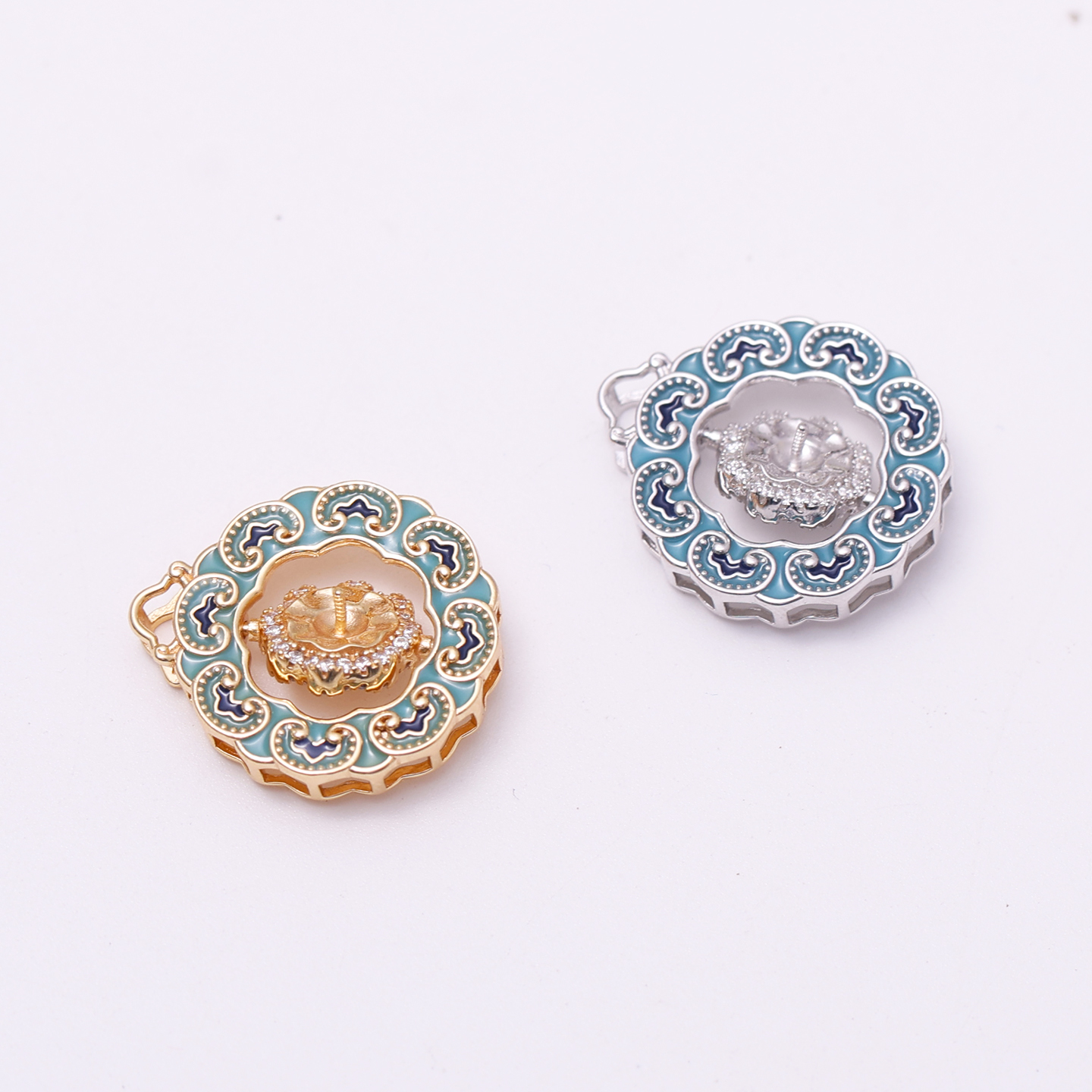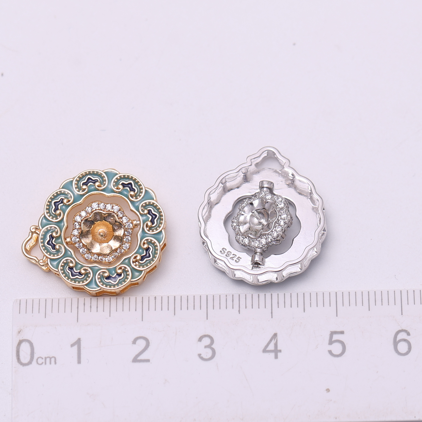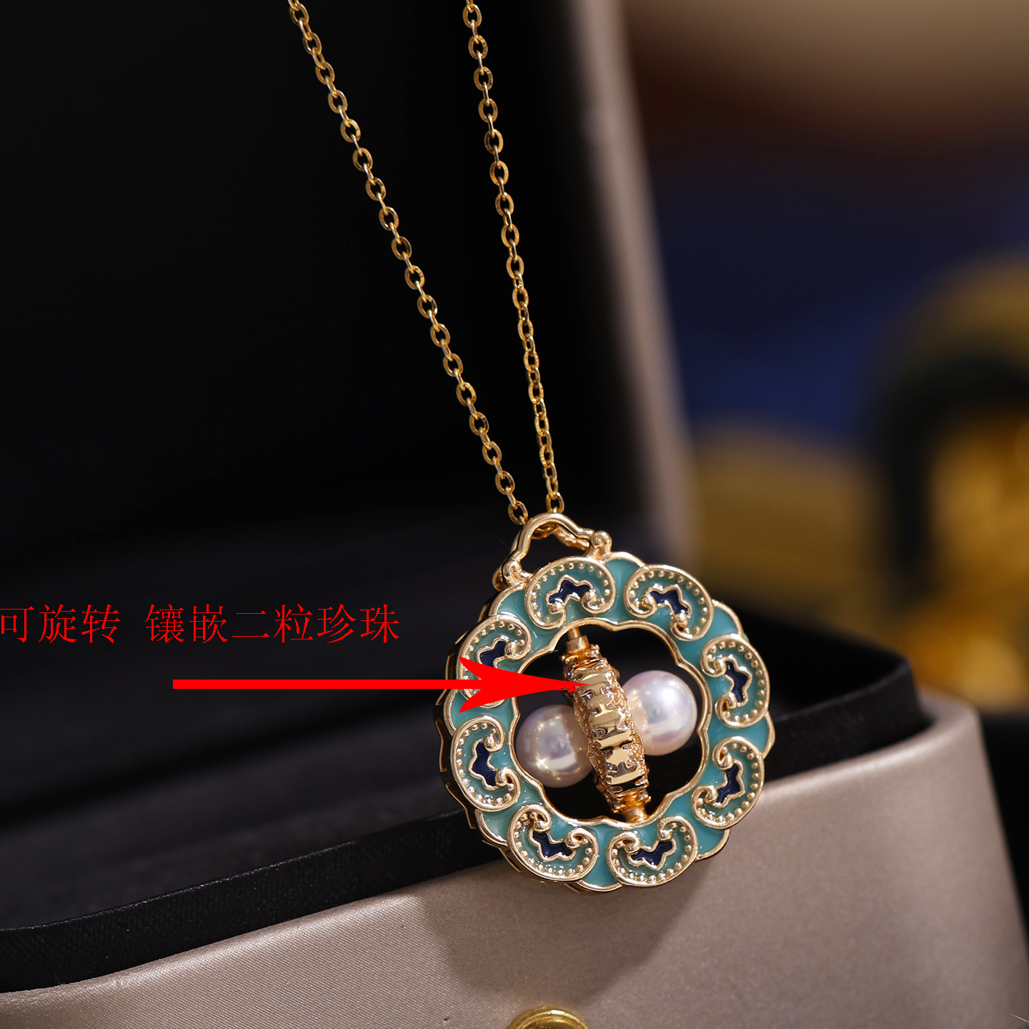 DIY配件S925纯银珐琅工艺旋转双珠吊坠空托手工diy制作银饰项链坠
