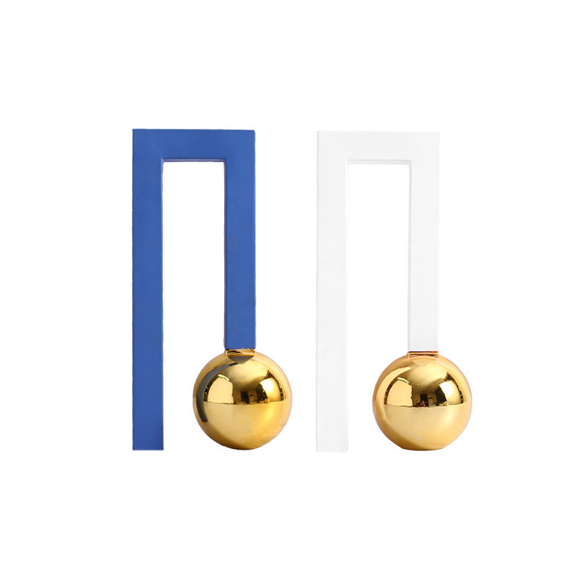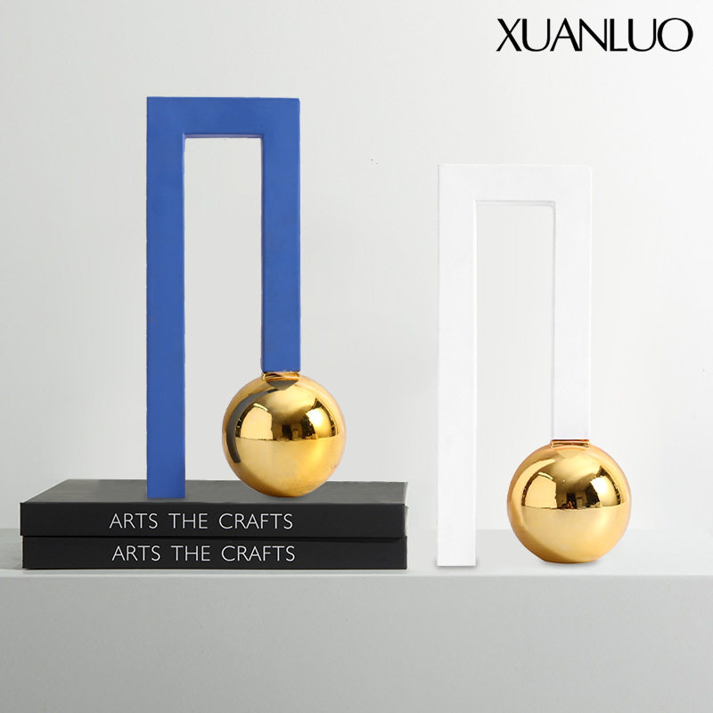 现代简约圆球蓝色框架摆件特殊几何造型样板房桌面工艺品树脂摆件