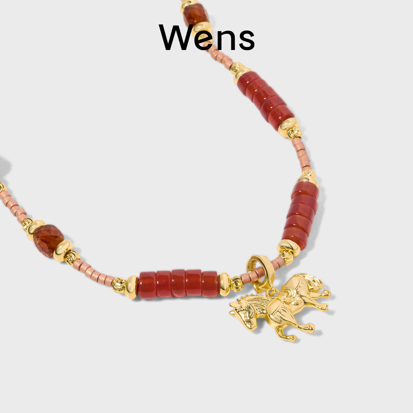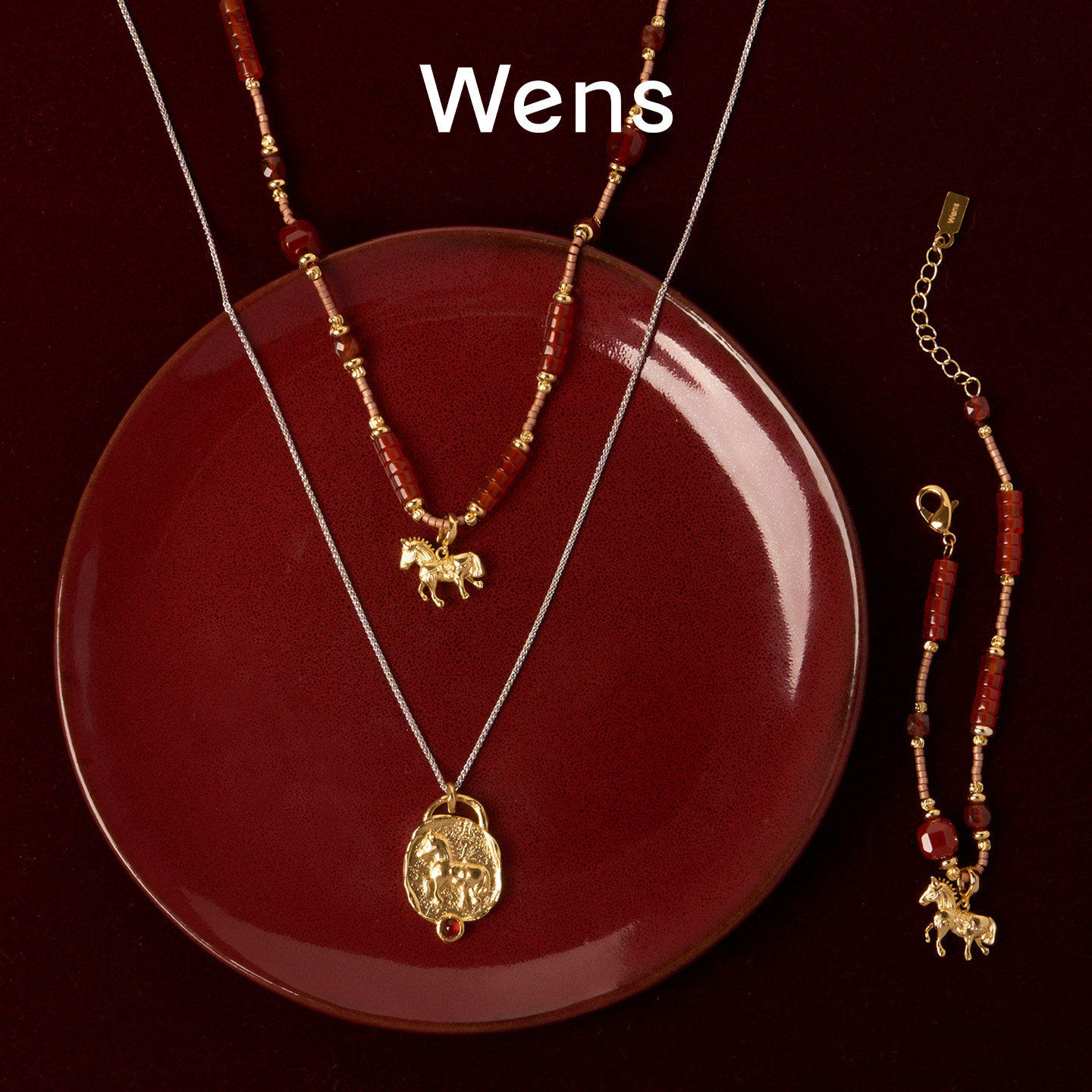 Wens 红玛瑙吊坠串珠红色项链女小众设计手链本命年马年生日礼物