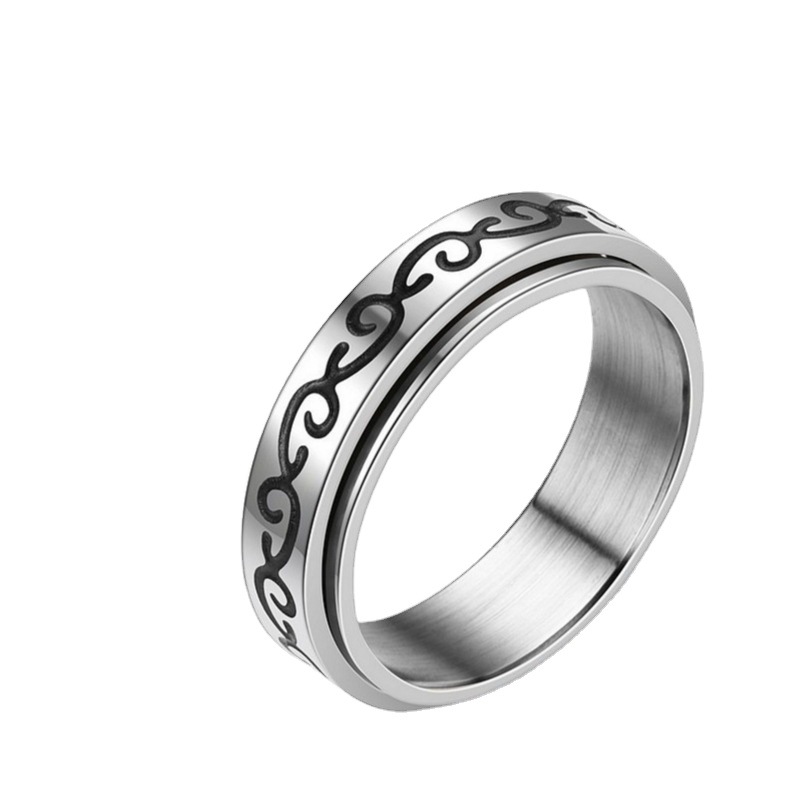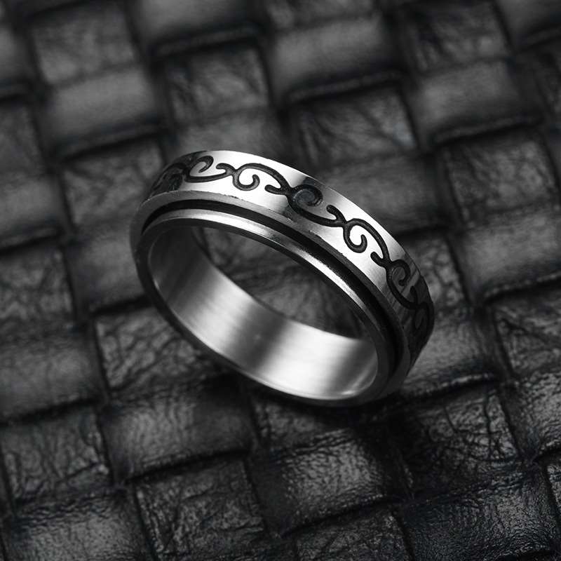 Titanium Steel Ring Mens Retro Turnable Stainless Steel Rin