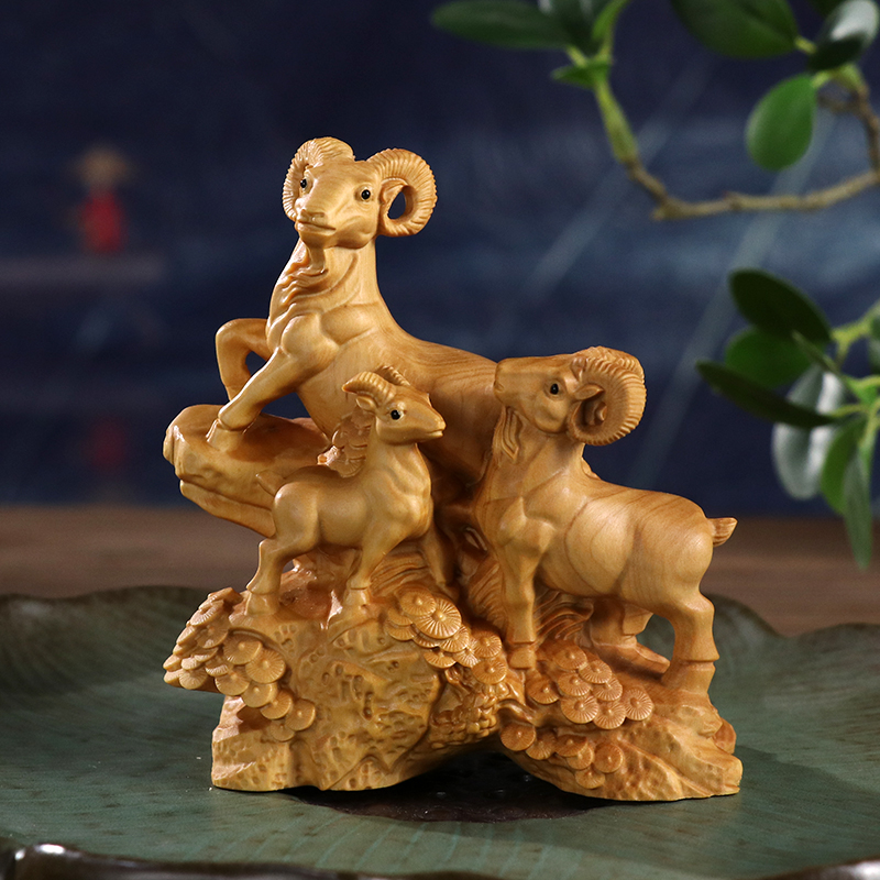 黄杨木雕刻生肖羊摆件三羊三阳开泰动物木质工艺品家居客厅送礼品
