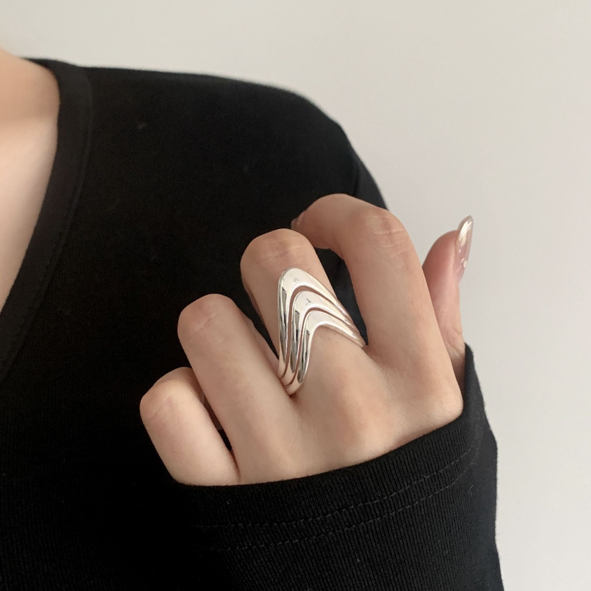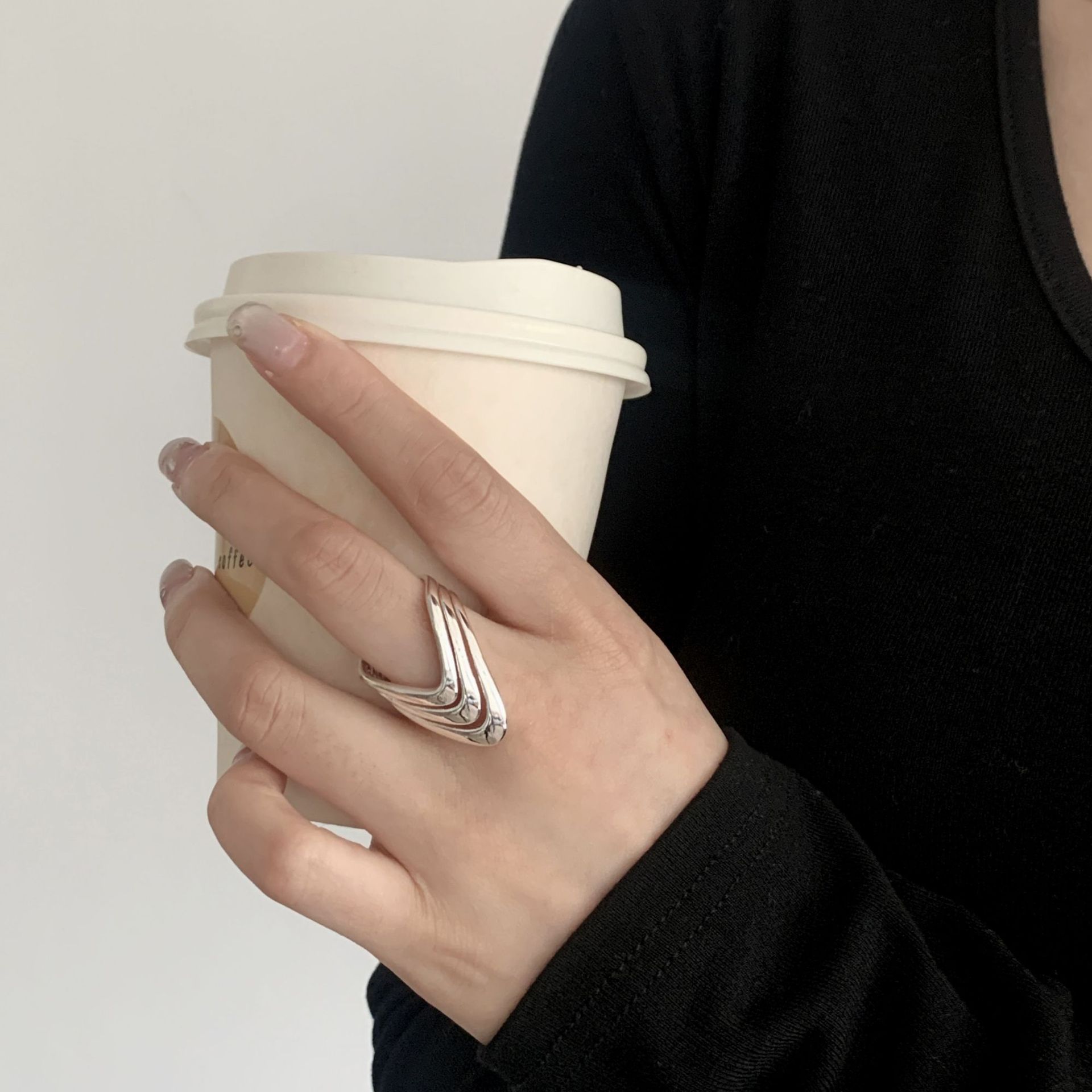 几何多层V形线条戒指女甜酷时尚个性镂空创意开口指环小众食指戒