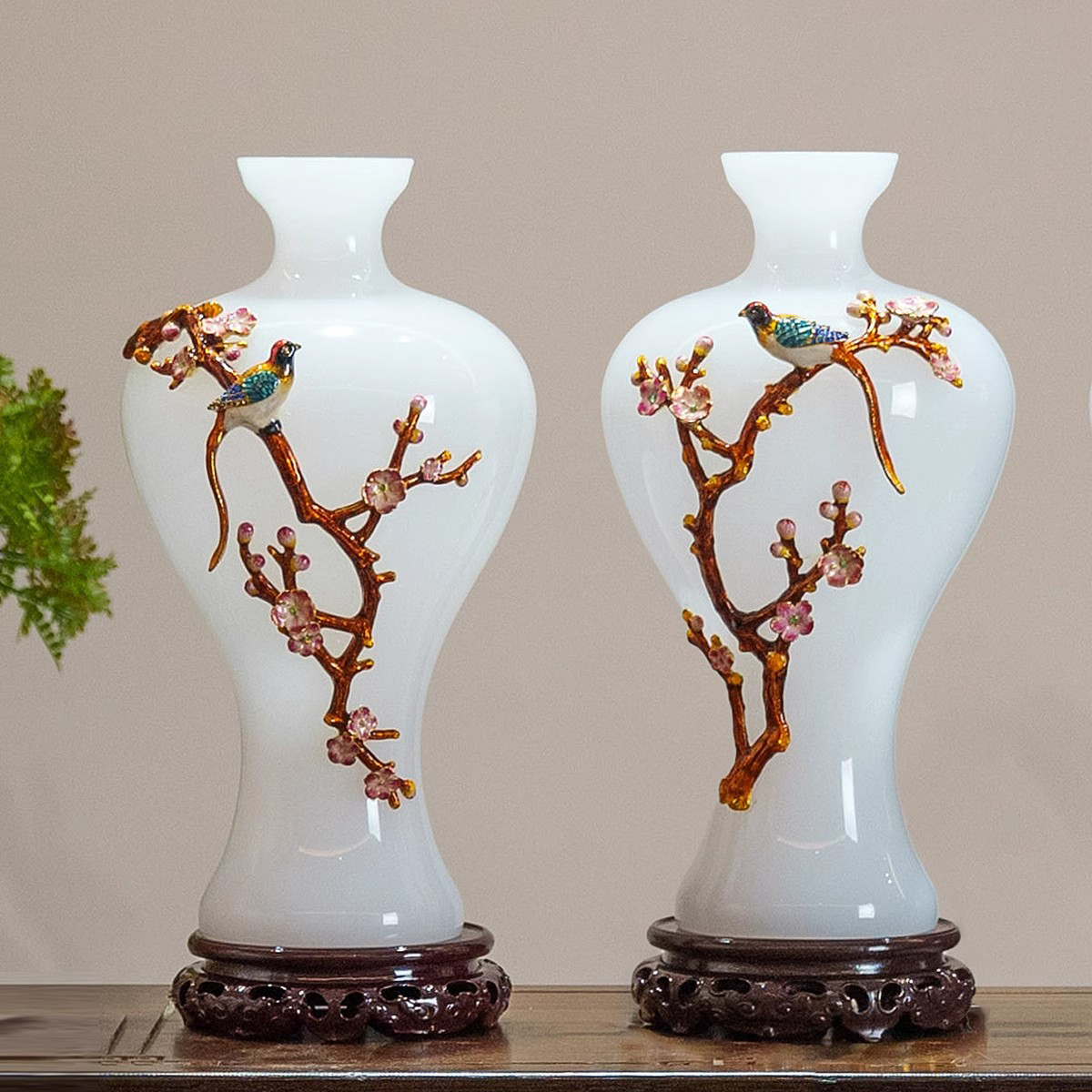 威弗列德琉璃玉花瓶摆件一对客厅玄关酒柜装饰品高档乔迁新居礼物