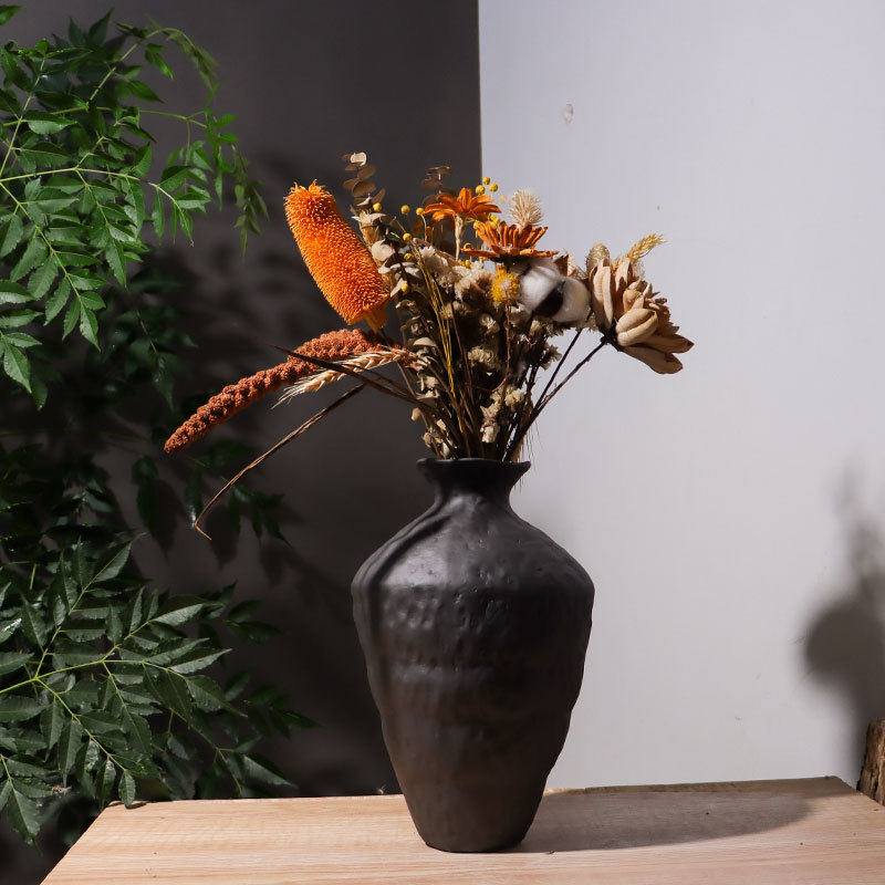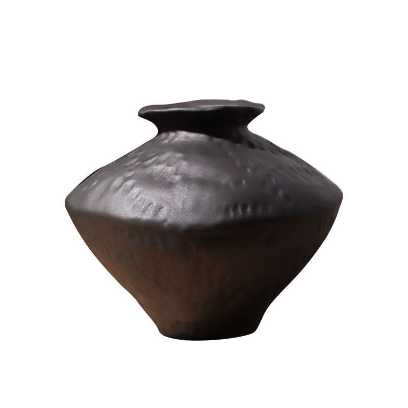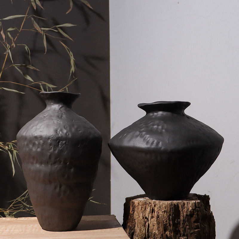 黑色陶瓷花瓶粗陶瓶插花复古怀旧手工民宿酒店侘寂风禅意摆件