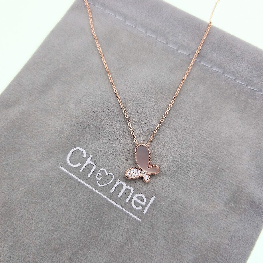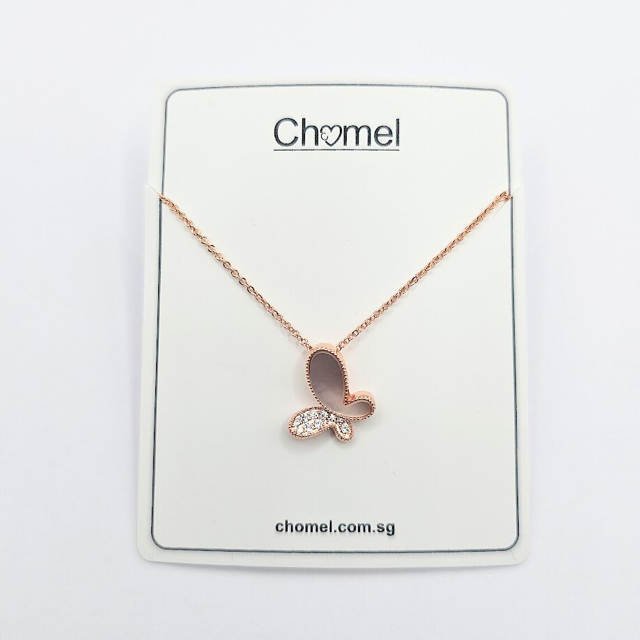 Chomel新加坡官方蝶舞轻盈精致贝母蝴蝶吊坠项链3471