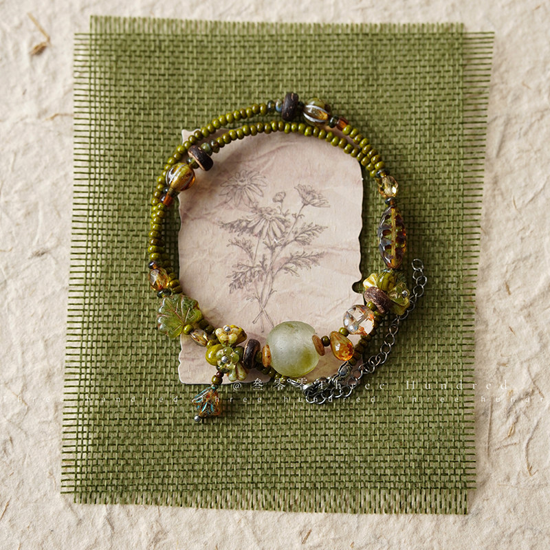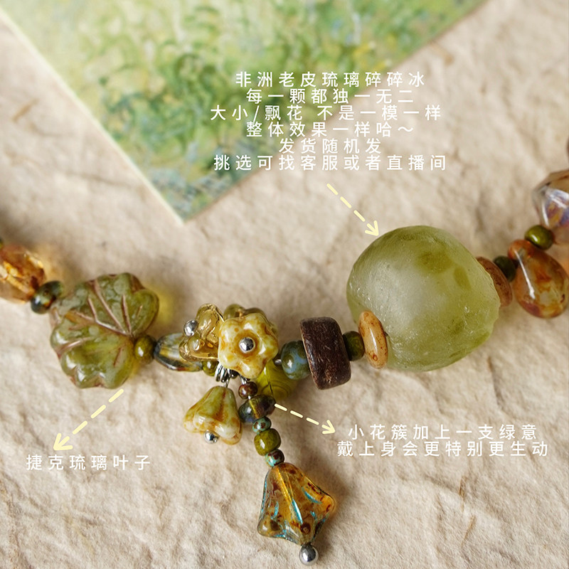 叁零零原创•苔痕 捷克琉璃小众复古绿色系女串珠碎冰冰项链
