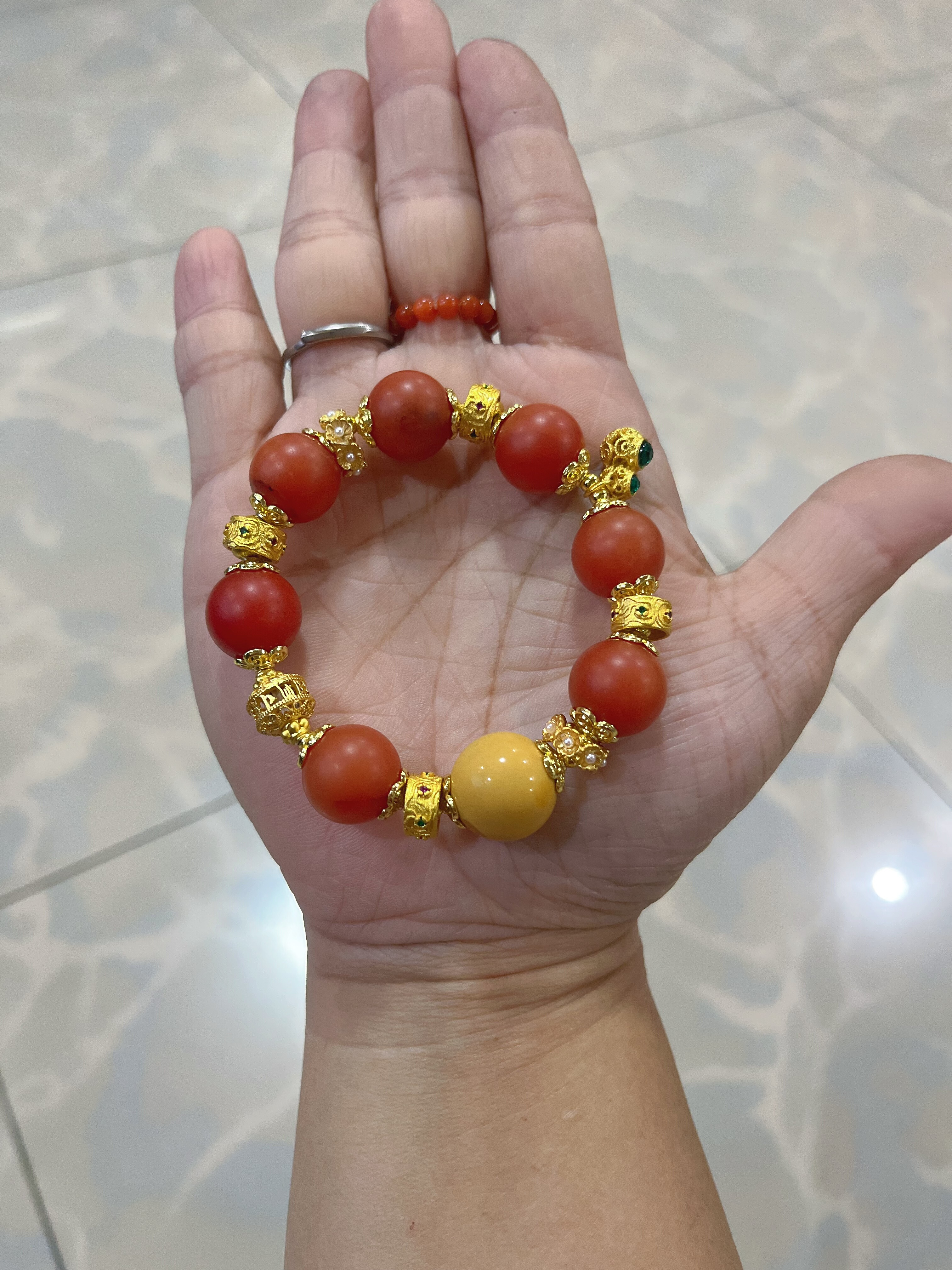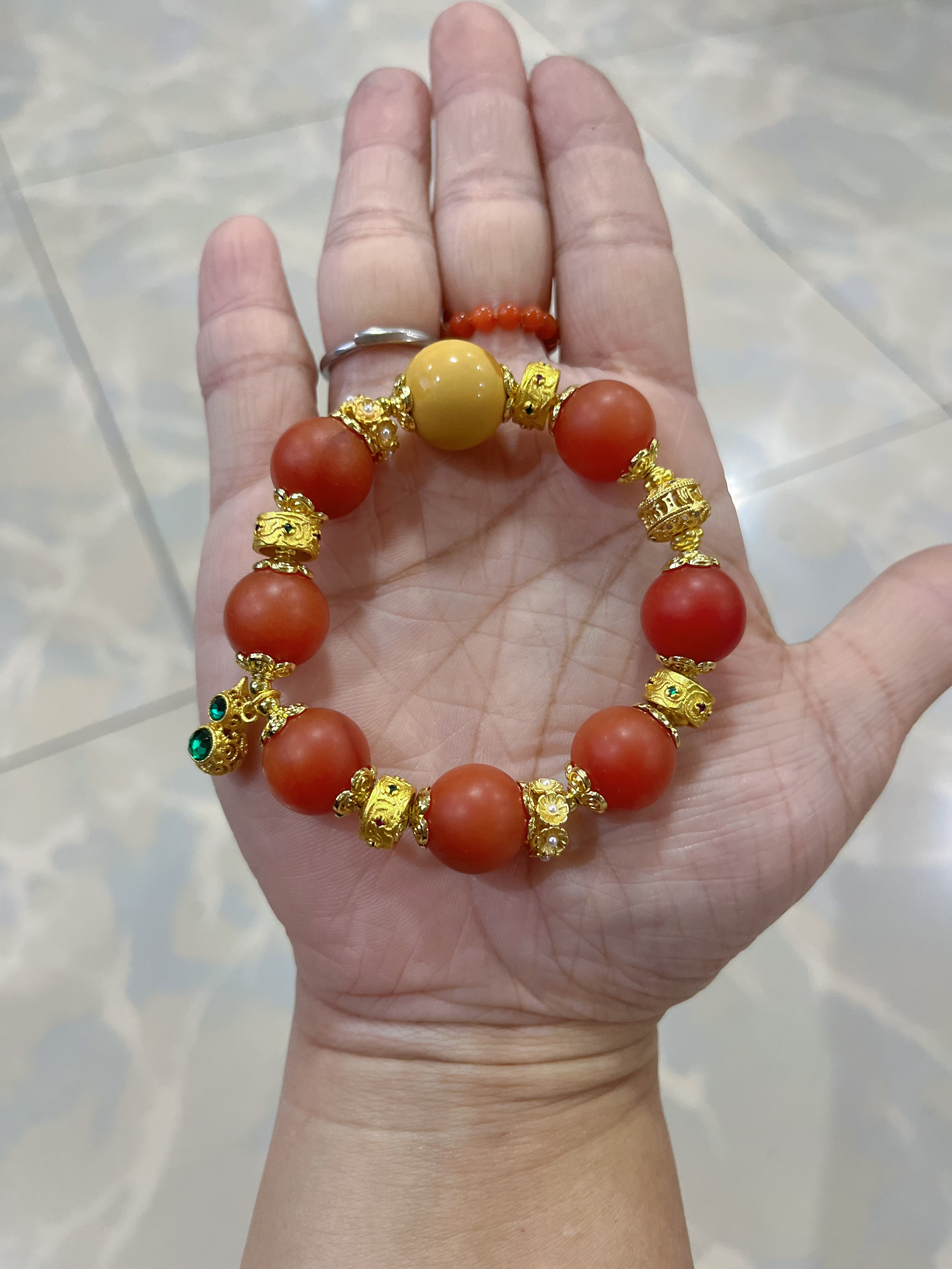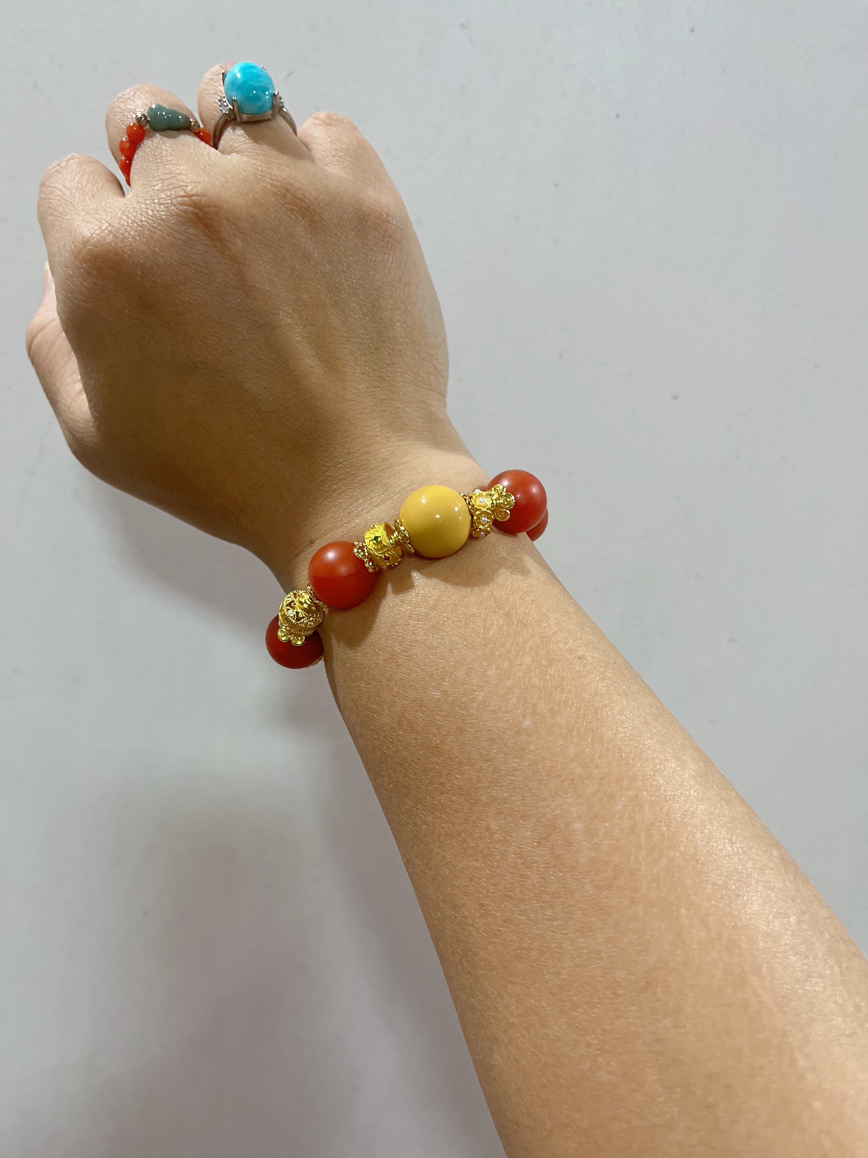 新中式国风原创设计天然红玛瑙缅黄玉本命年红色礼物小众手串手链