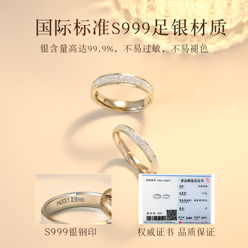 星河S999足银情侣戒指小众设计对戒女男一对纪念日礼物可调节刻字