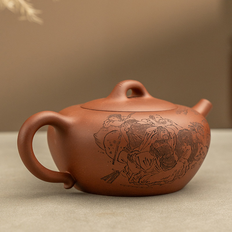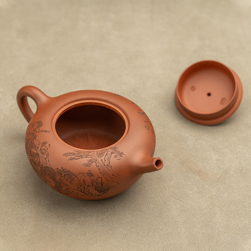 紫砂壶《陶刻仙渡壶(八仙过海图)》高级工艺美术师储国峰 430ml