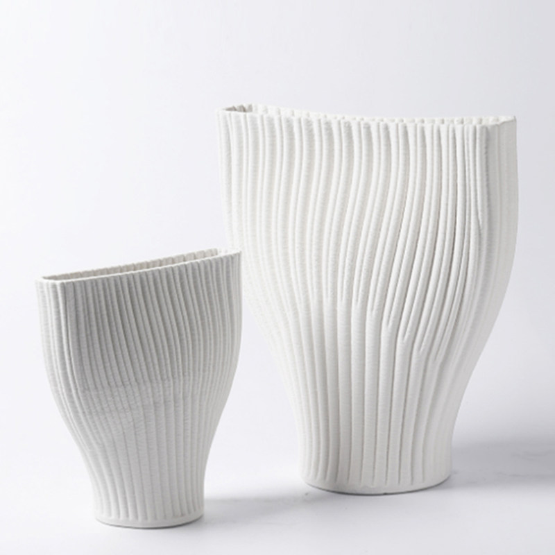 简约现代白色陶瓷花器摆件样板间酒店别墅客厅茶室玄关装饰摆放