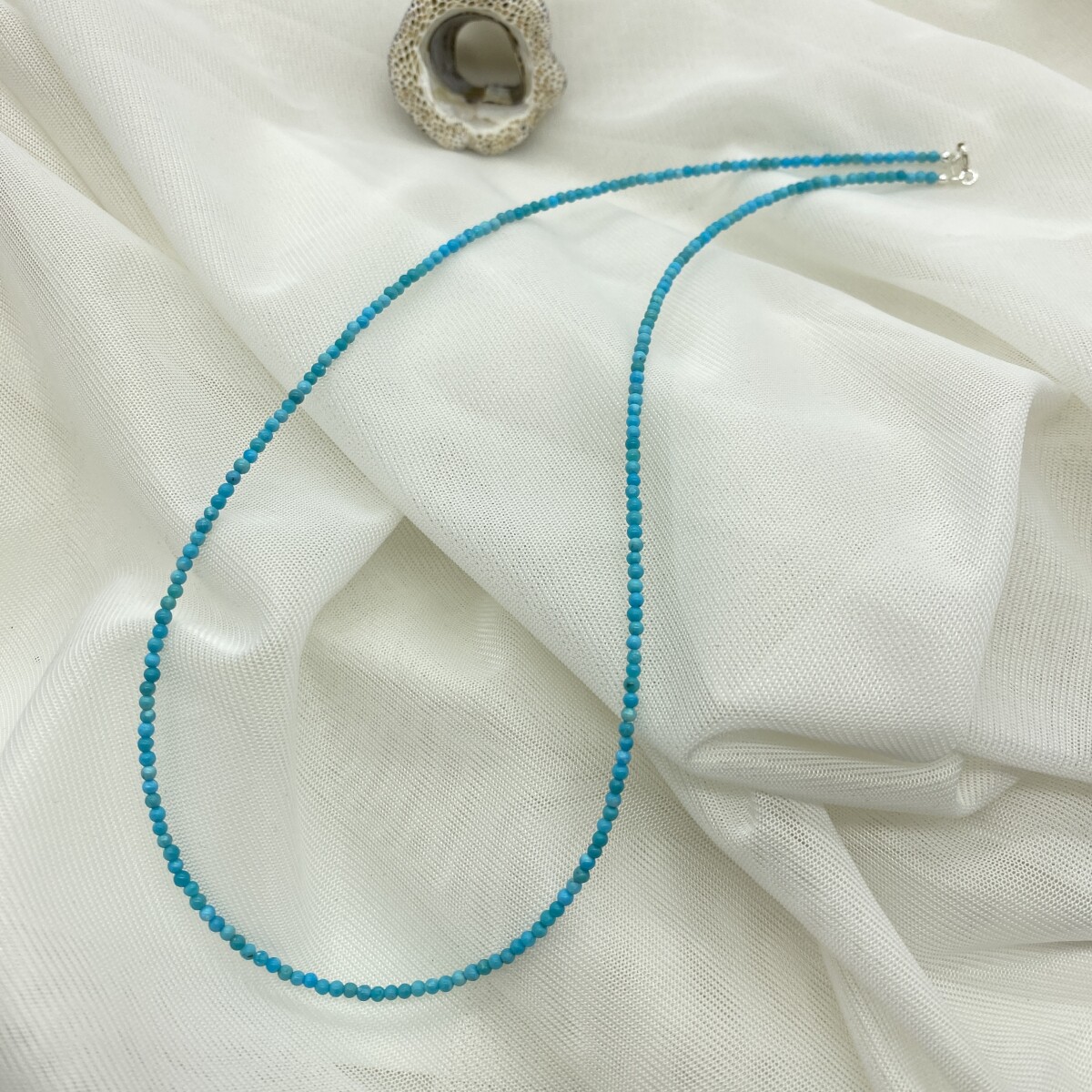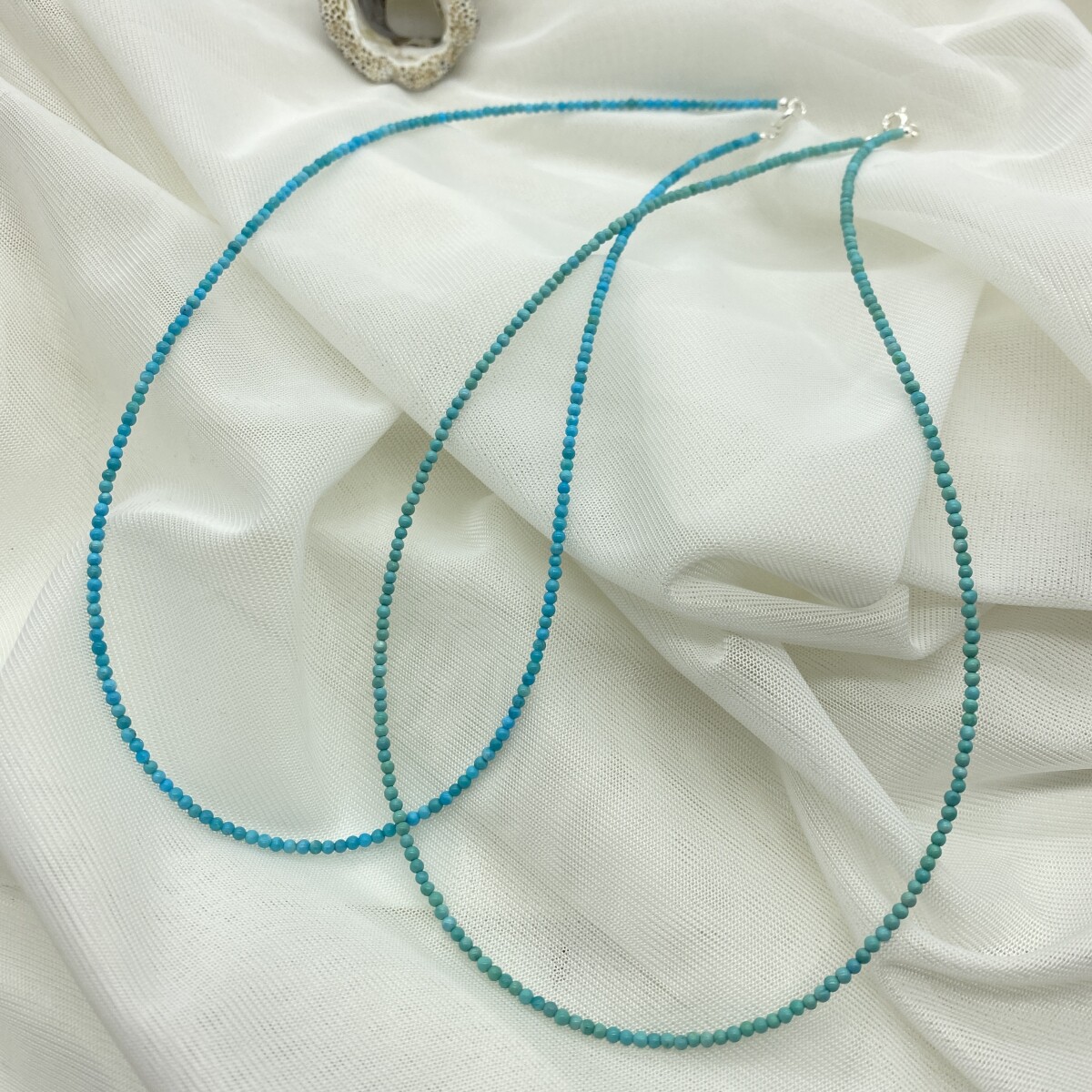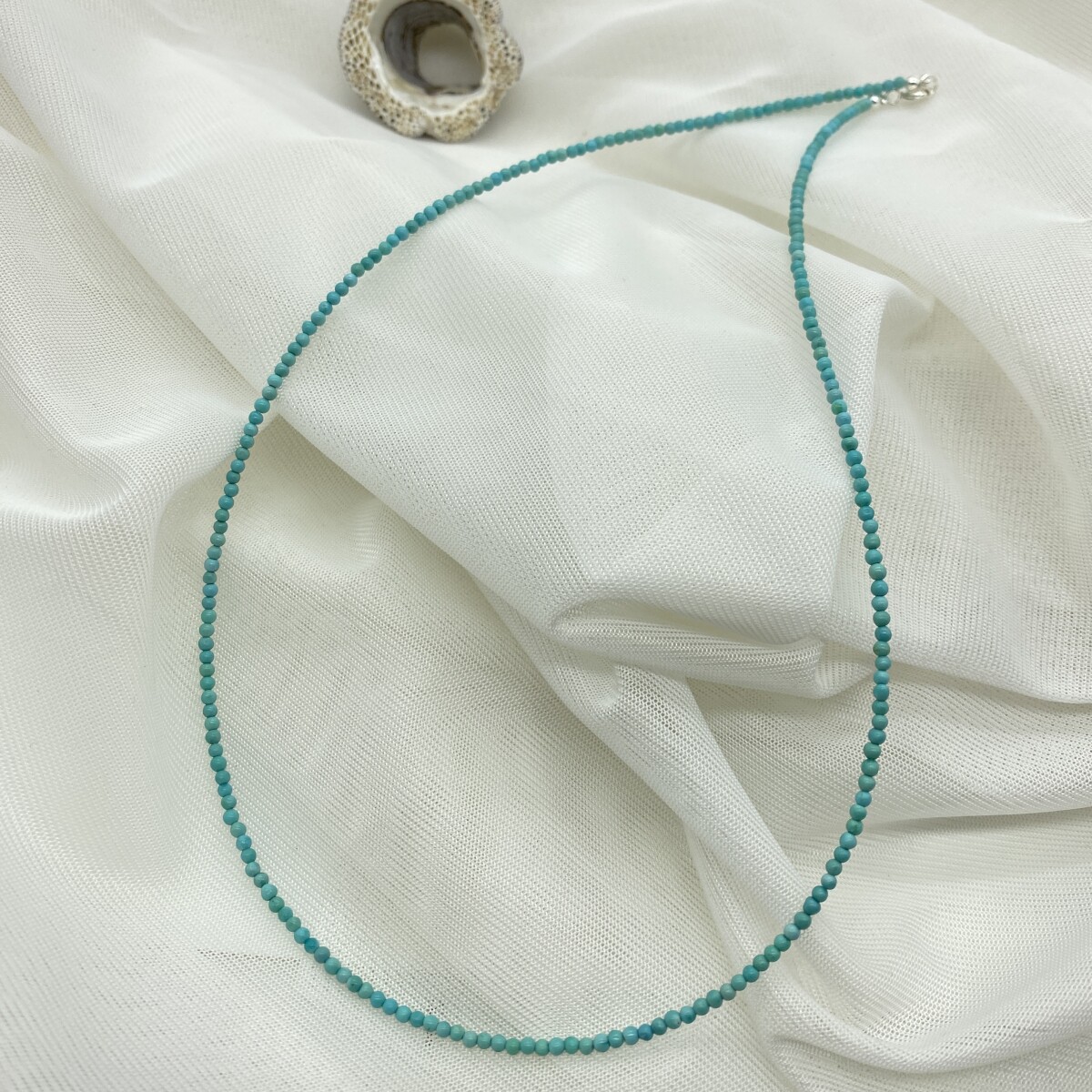 天然原矿绿松石小米珠项链极细蓝绿色锁骨链简约气质女颈链925银