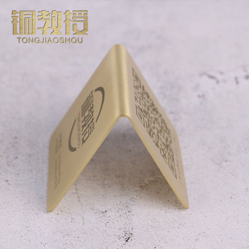 铜教授 黄铜二维码指示牌店铺装饰收银台定制个性扫码点单牌摆件