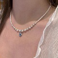 施家正圆强光珍珠S925纯银渐变碎银子项链精致耳饰高级感锁骨链