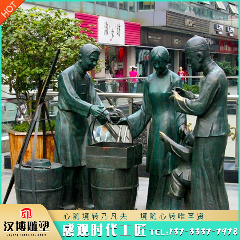 玻璃钢仿铜人物雕塑商业步行街铸铜卖货郎雕像铜雕民俗主题人像