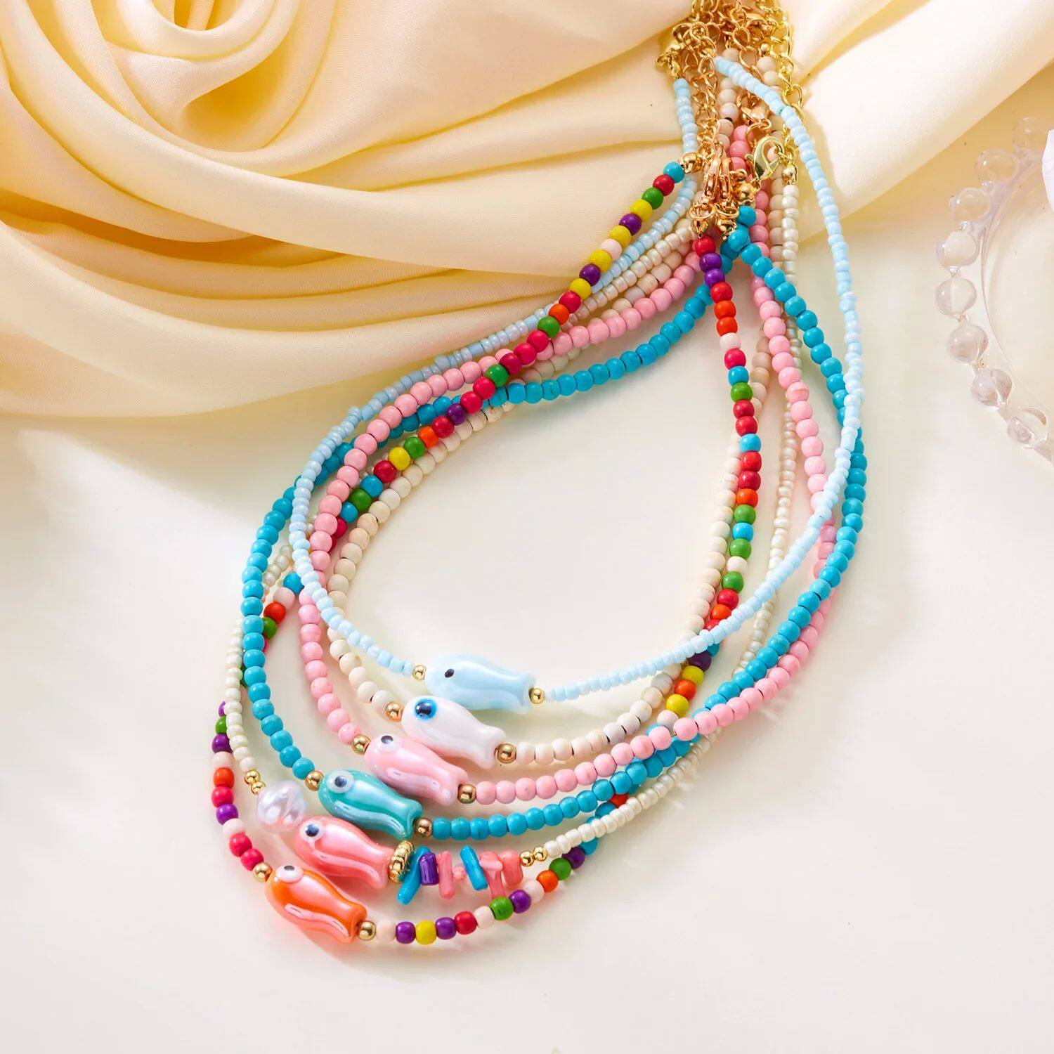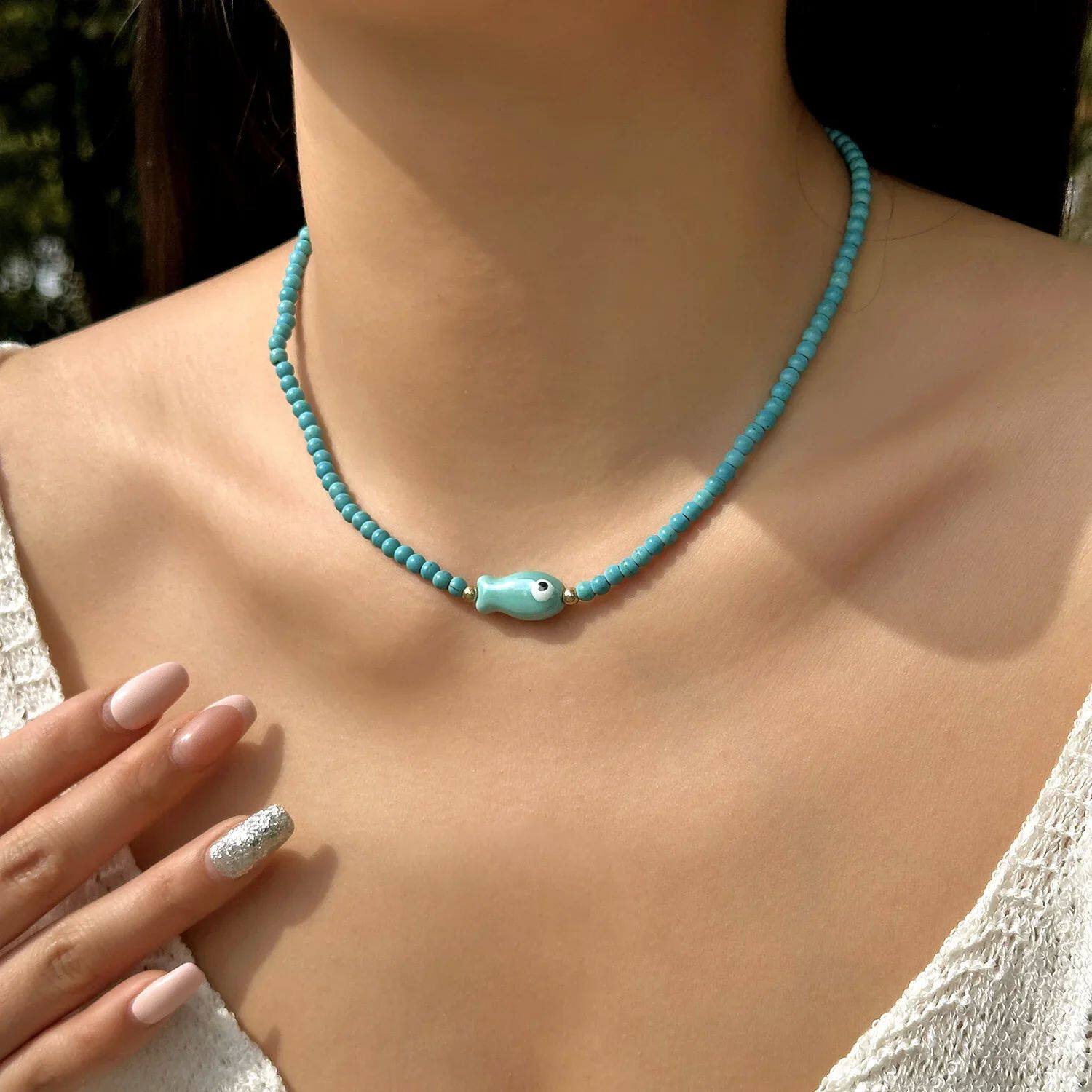 Cute Colorful Ceramic Fish Beaded Necklace For Women Unisex