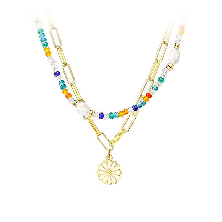 蔷薇风暴江一笛高叶同款雏菊双层项链法式甜美双层叠戴锁骨链颈链