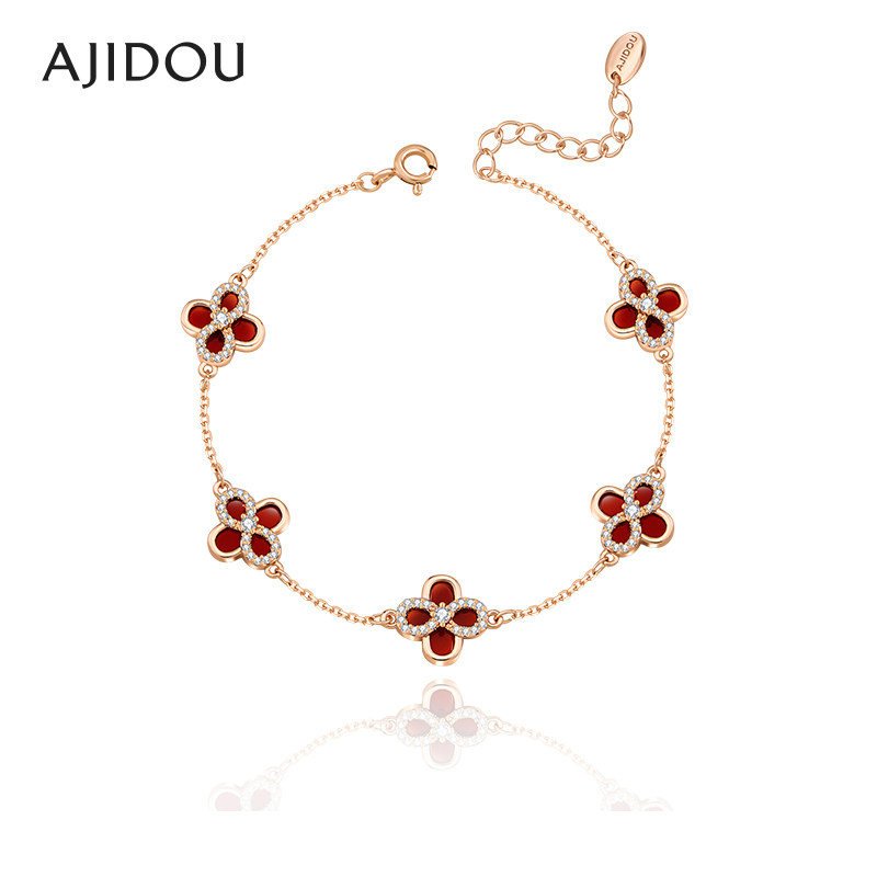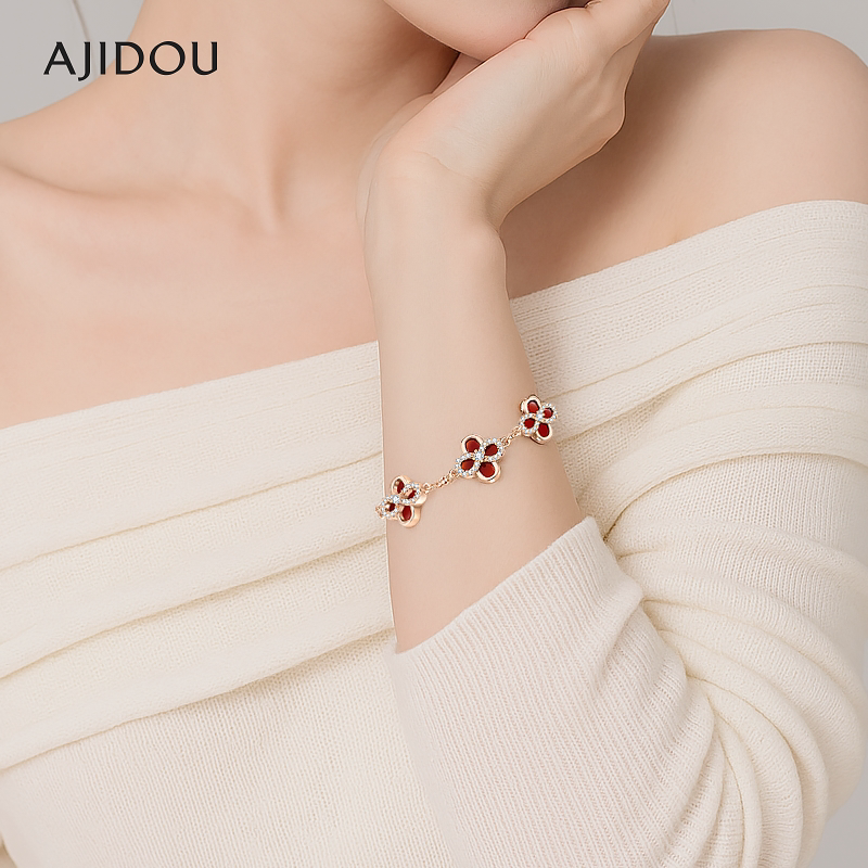 AJIDOU阿吉豆手饰女款时尚百搭简约气质潮流高级感红色四叶草手链