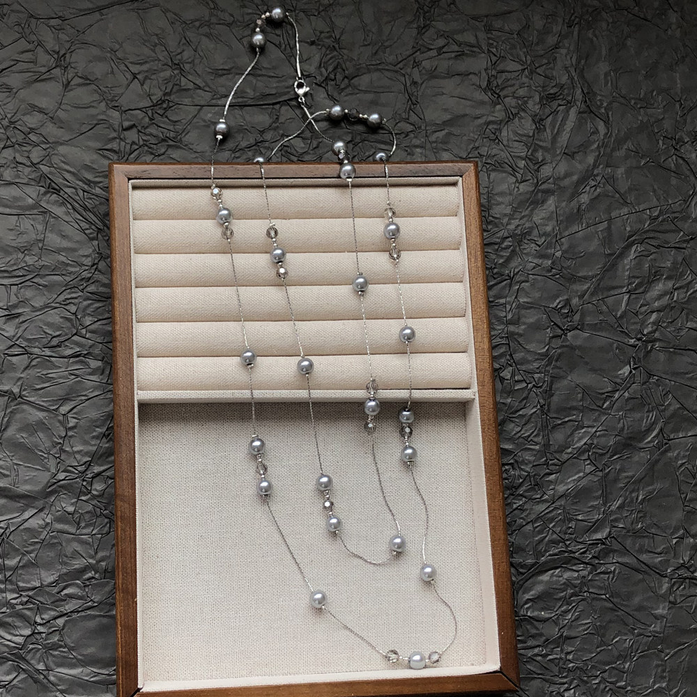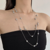 双层叠戴灰色满天星珍珠项链女轻奢小众高级感毛衣链锁骨链配饰潮