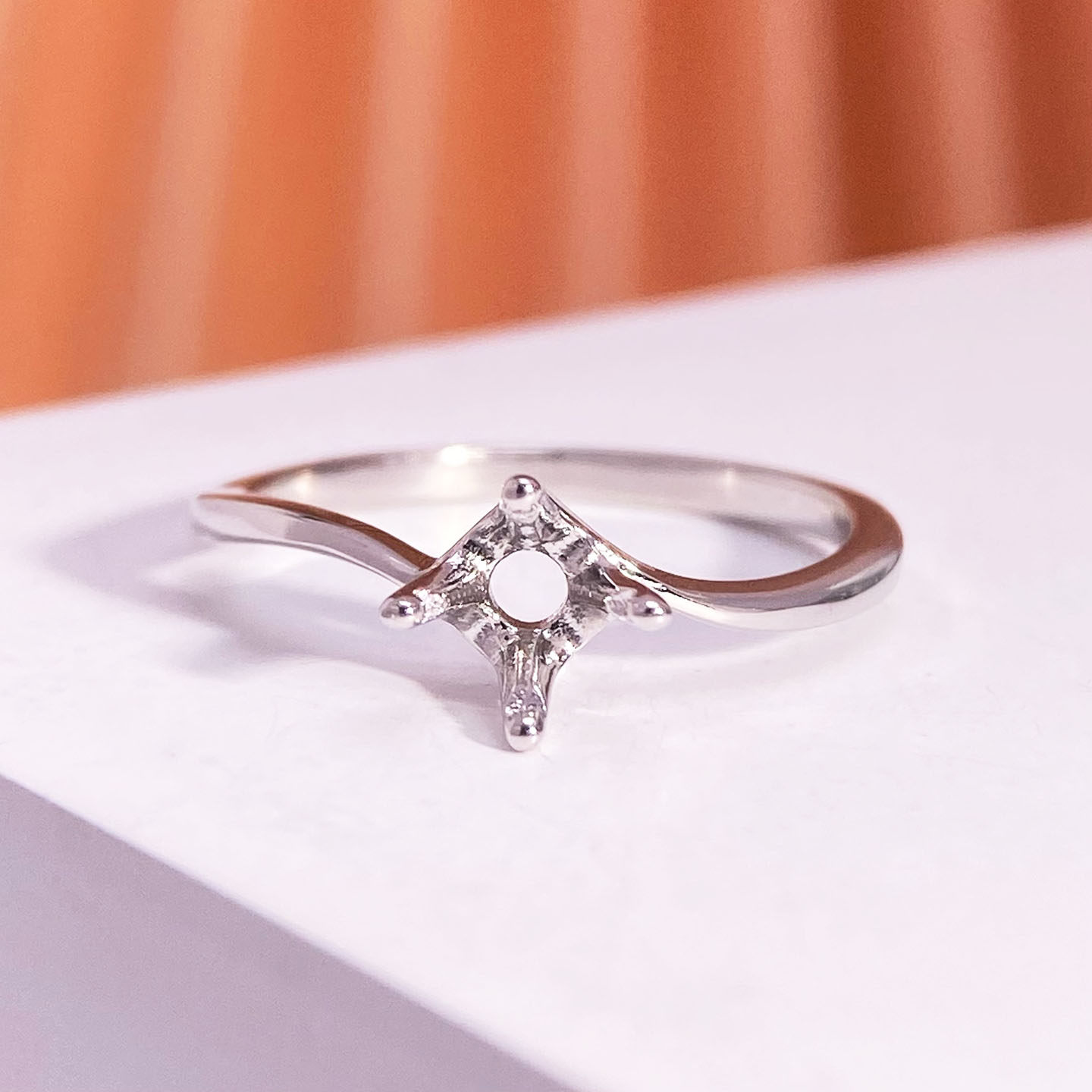 扭四爪戒指空托S925纯银镶嵌莫桑钻30分50分1克拉女闭口戒托简约