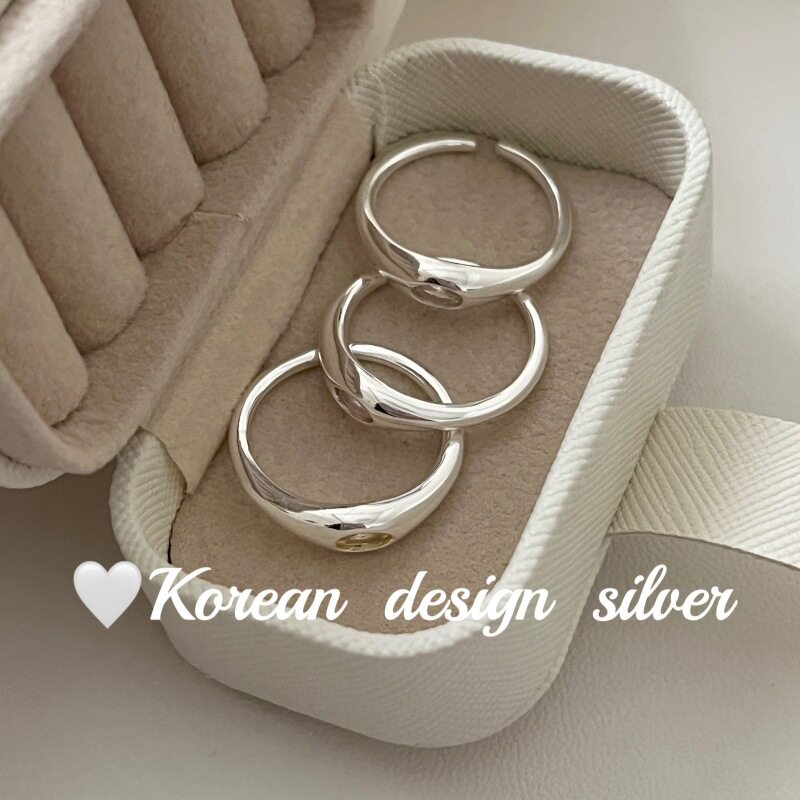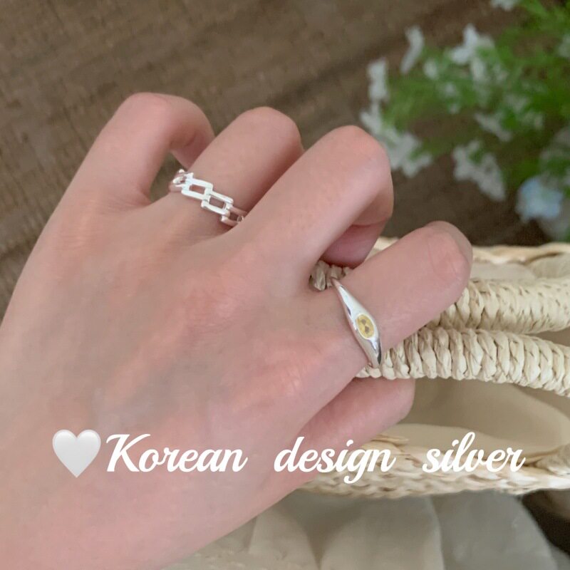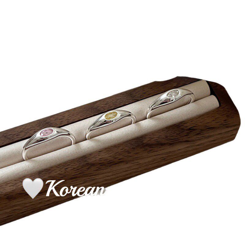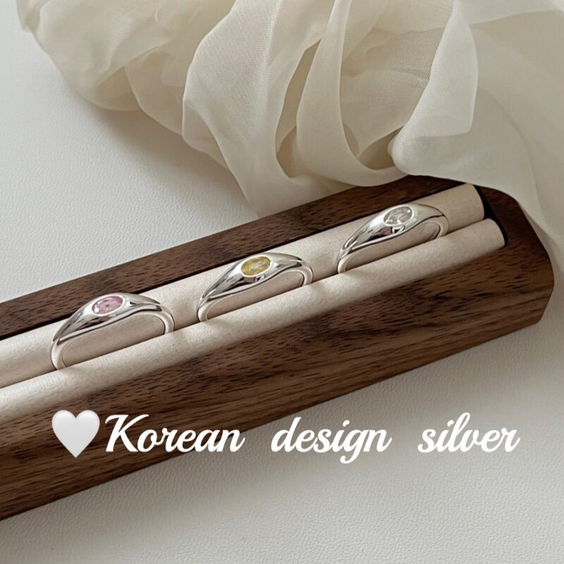 韩系性冷淡风银饰批发 S925纯银简约粉绿白色锆石戒指小众高级感