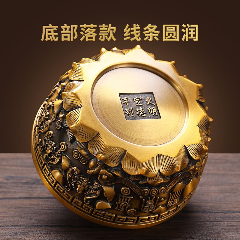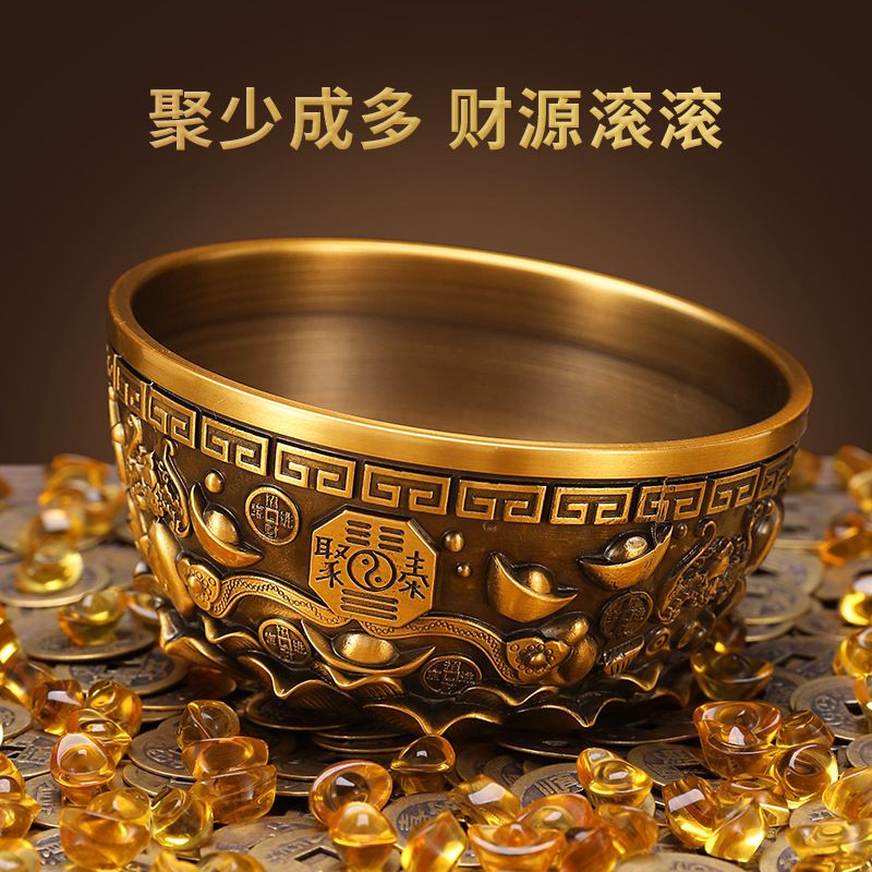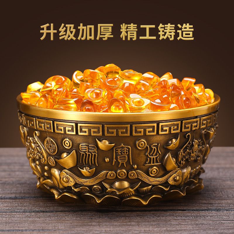 黄铜聚宝盆摆件客厅装饰水晶元宝大号招财进宝铜缸开业乔迁送礼品