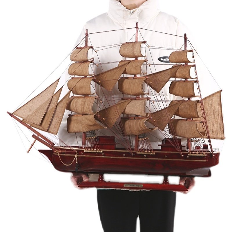 实木一帆风顺帆船摆件复古风高档桌面老板领导办公室乔迁开业礼品