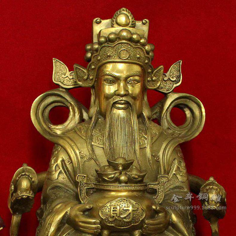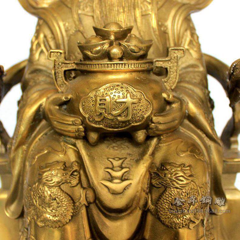 龙椅铜财神高40公分 黄铜文财神铜像38cm摆件黄铜财神爷