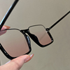 黑框复古大框墨镜女网红方形腮红显瘦素颜眼镜高级感太阳镜下半框
