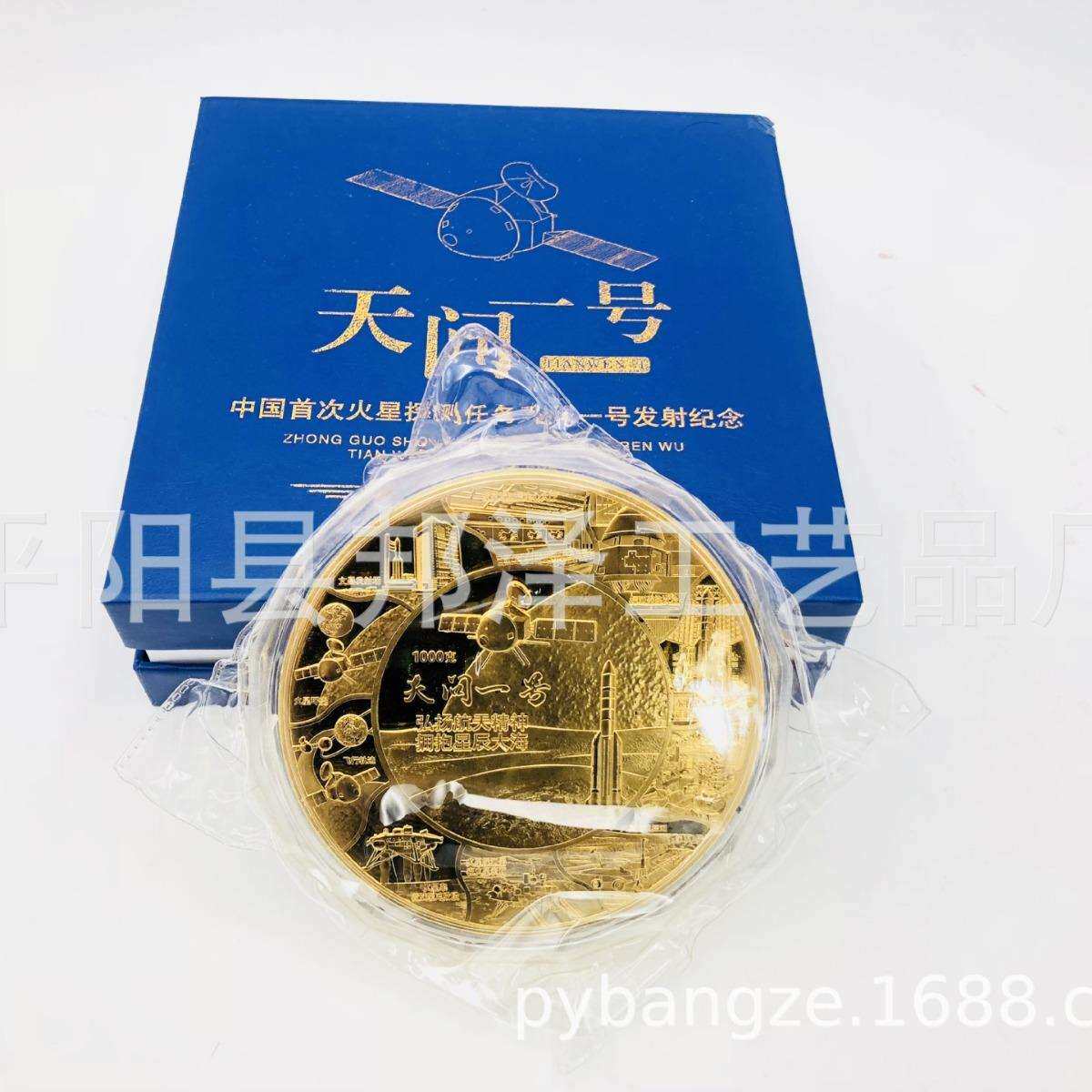 新品天问一号纪念金盘纪念章镀金章公斤章 火星探测任务航天梦章