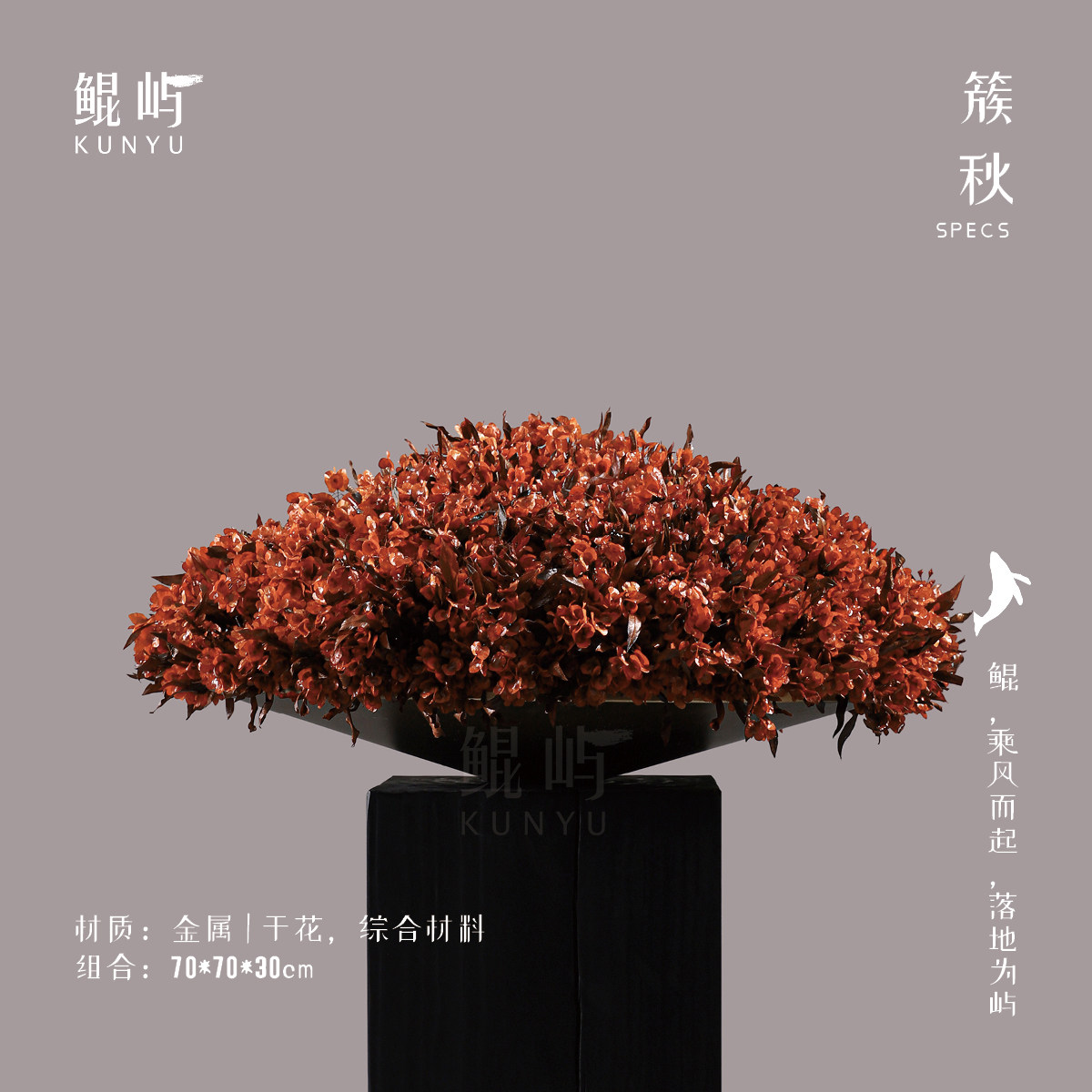 鲲屿 现代红色系手工花艺【簇秋】样板间茶室酒店会艺术装饰