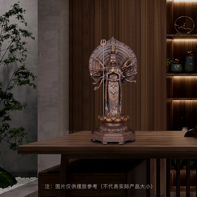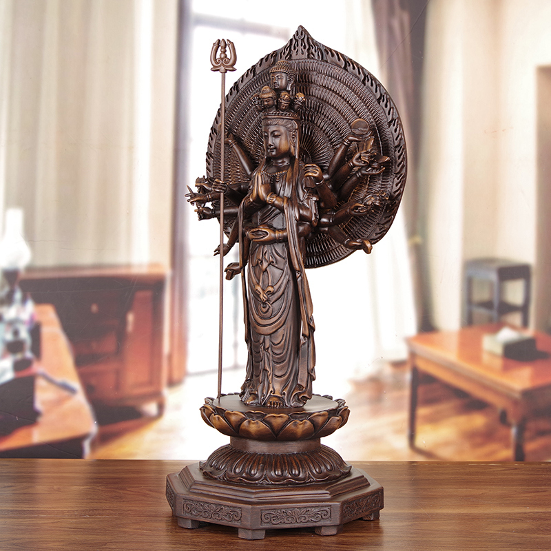 木雕观音摆件纯黑檀木质千手观世音菩萨神像客厅家用佛堂寺庙供奉