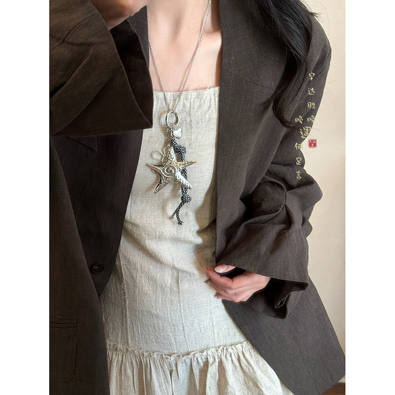 银色星星花朵项链女2026新款时尚挂脖颈链y2k辣妹小众设计感配饰