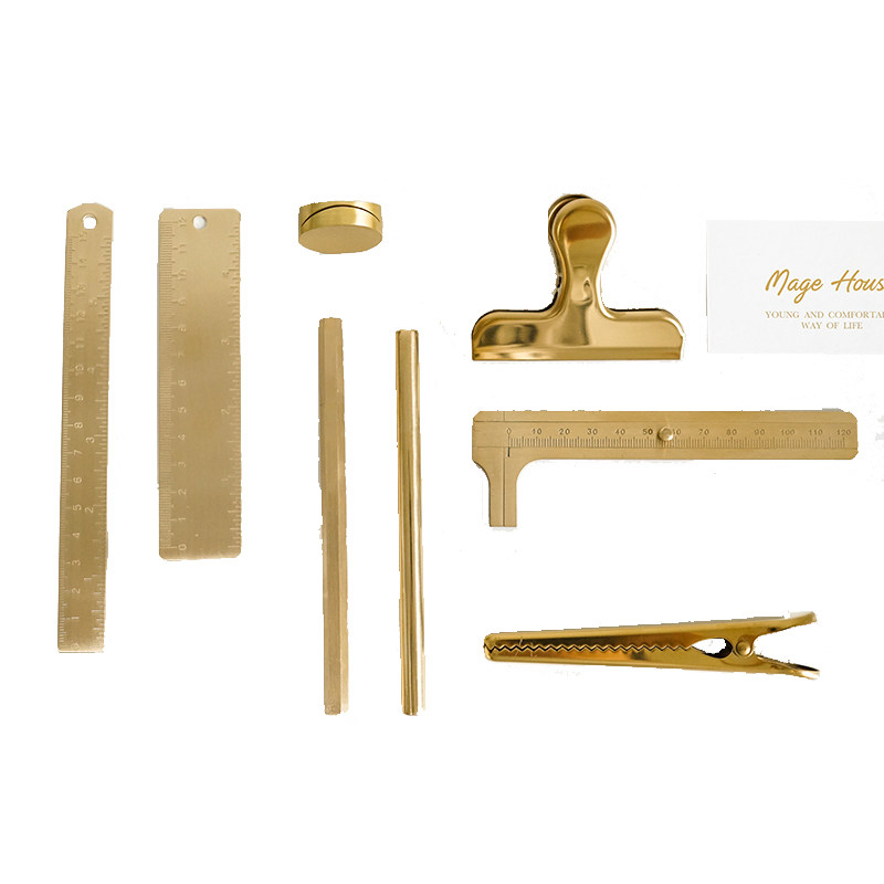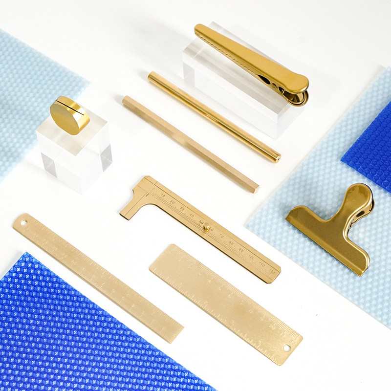 新品黄铜文玩工具游标卡尺HAzY文艺复古简约北欧式风笔夹勺丹麦小