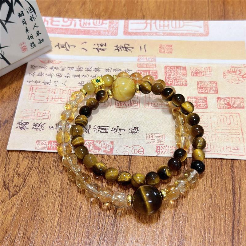 天然水晶手链diy手工圆黄塔晶珠天然虎眼水晶手串爆款饰品批