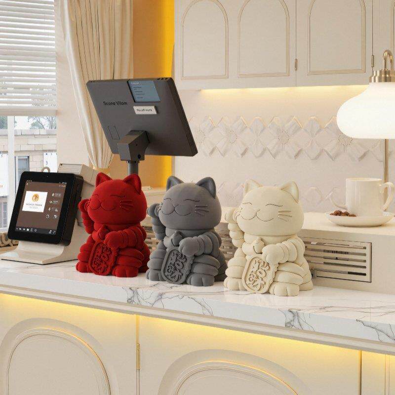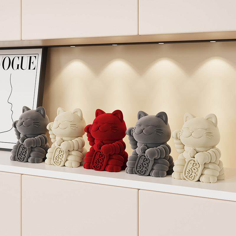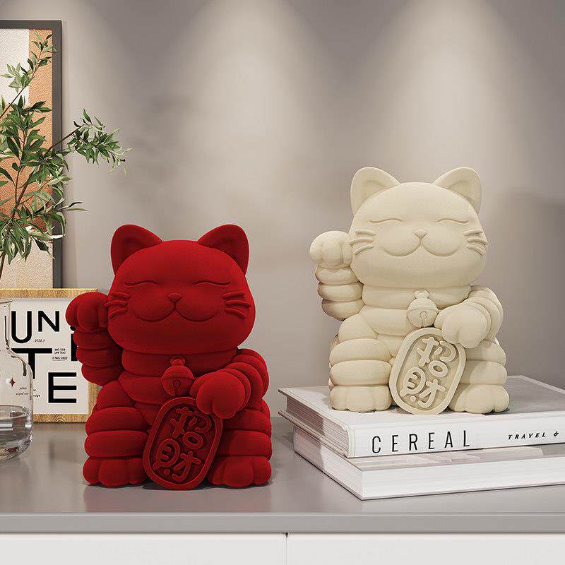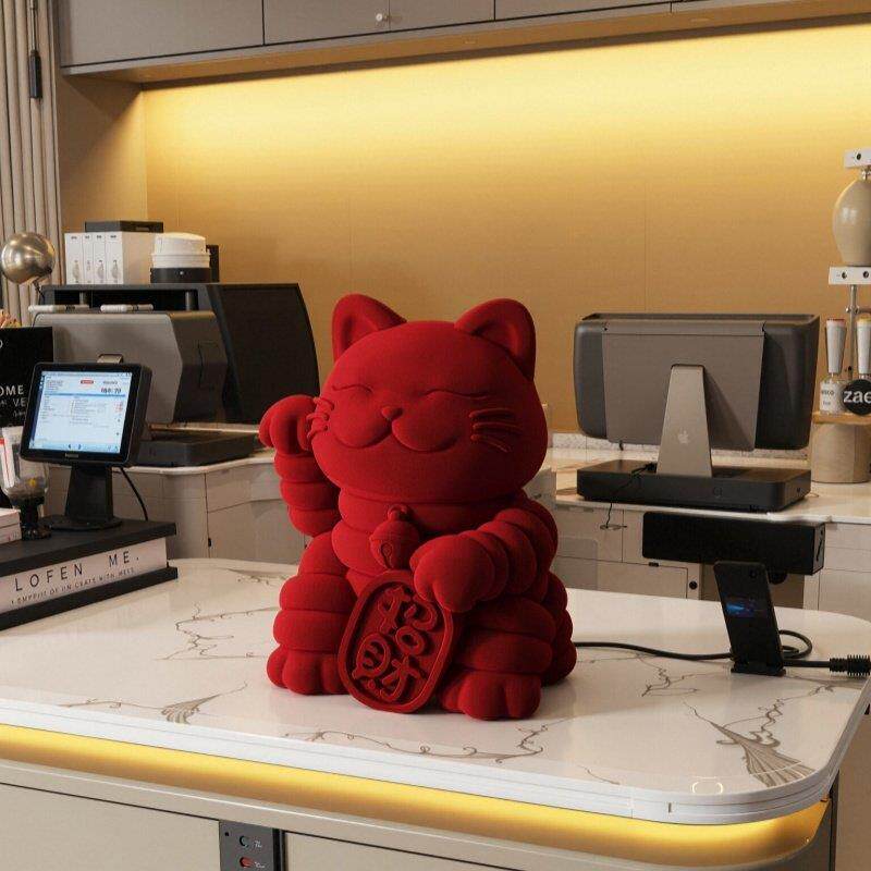 招财猫红色摆件轻奢收银柜台装饰品客厅前台发财猫新店开业大吉礼