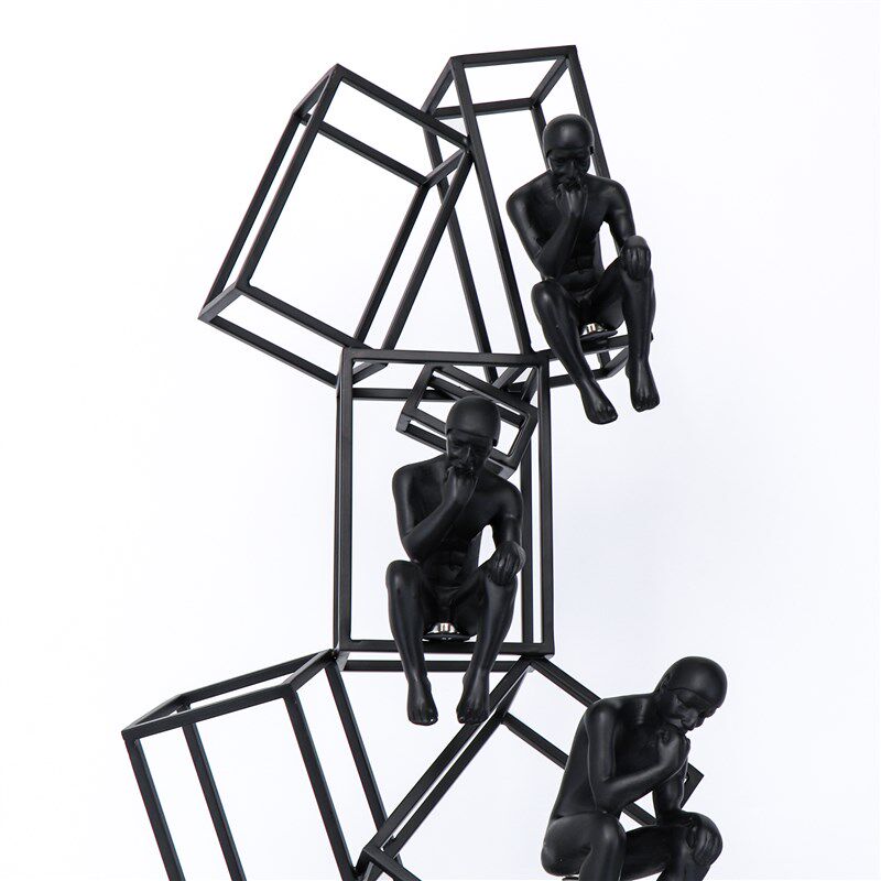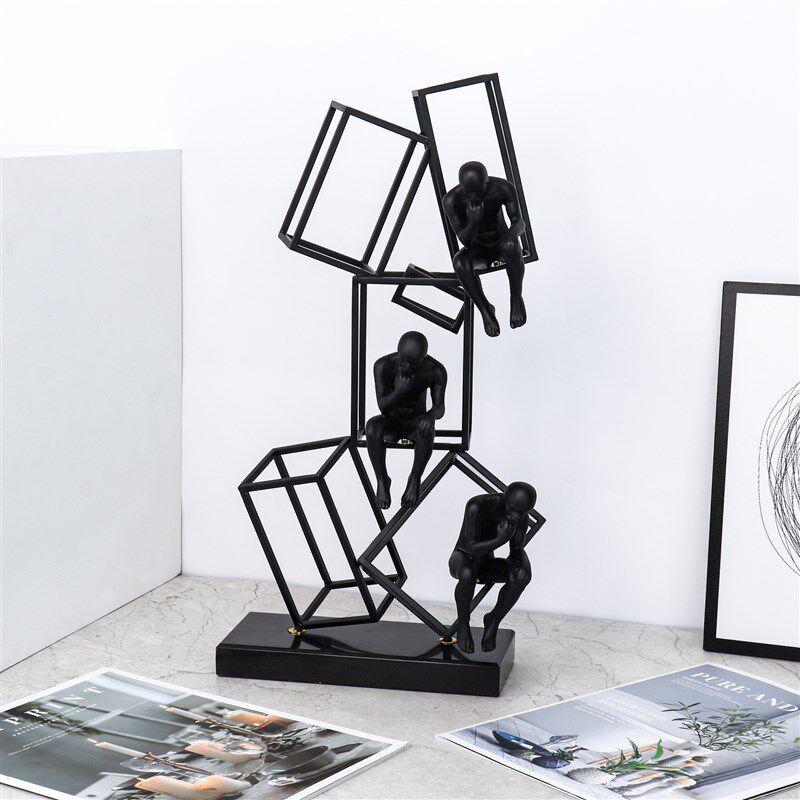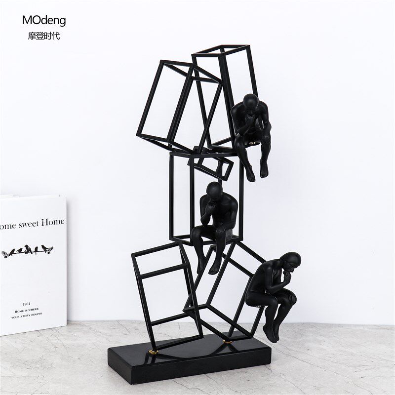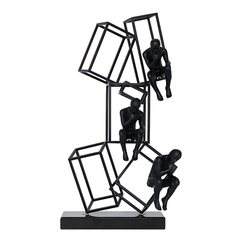 极速几何金属黑色烤漆铁艺思考者摆件现代简约样板房电视柜雕塑工