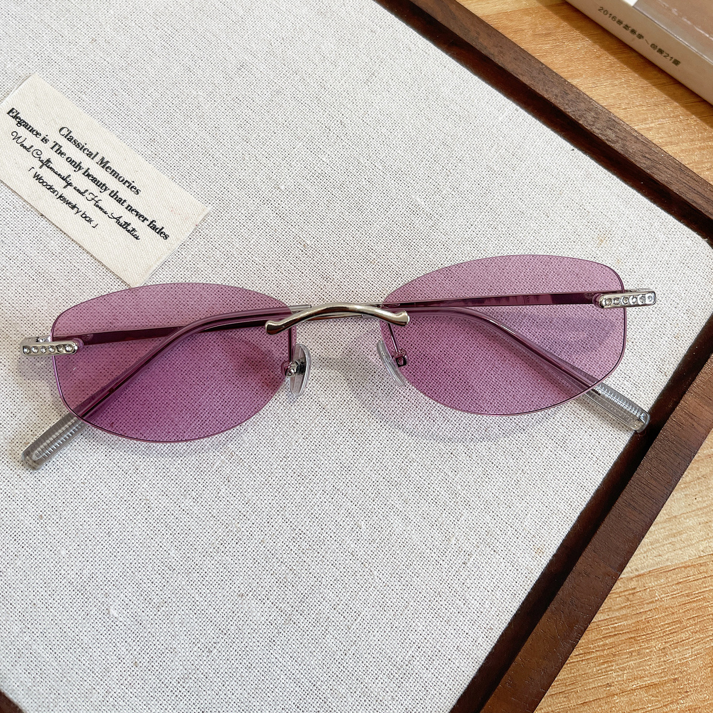 金属质感无框猫眼紫色墨镜女显瘦气质海边度假彩色太阳镜2026春夏